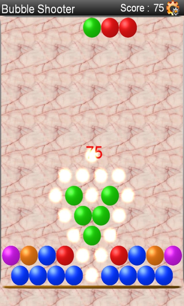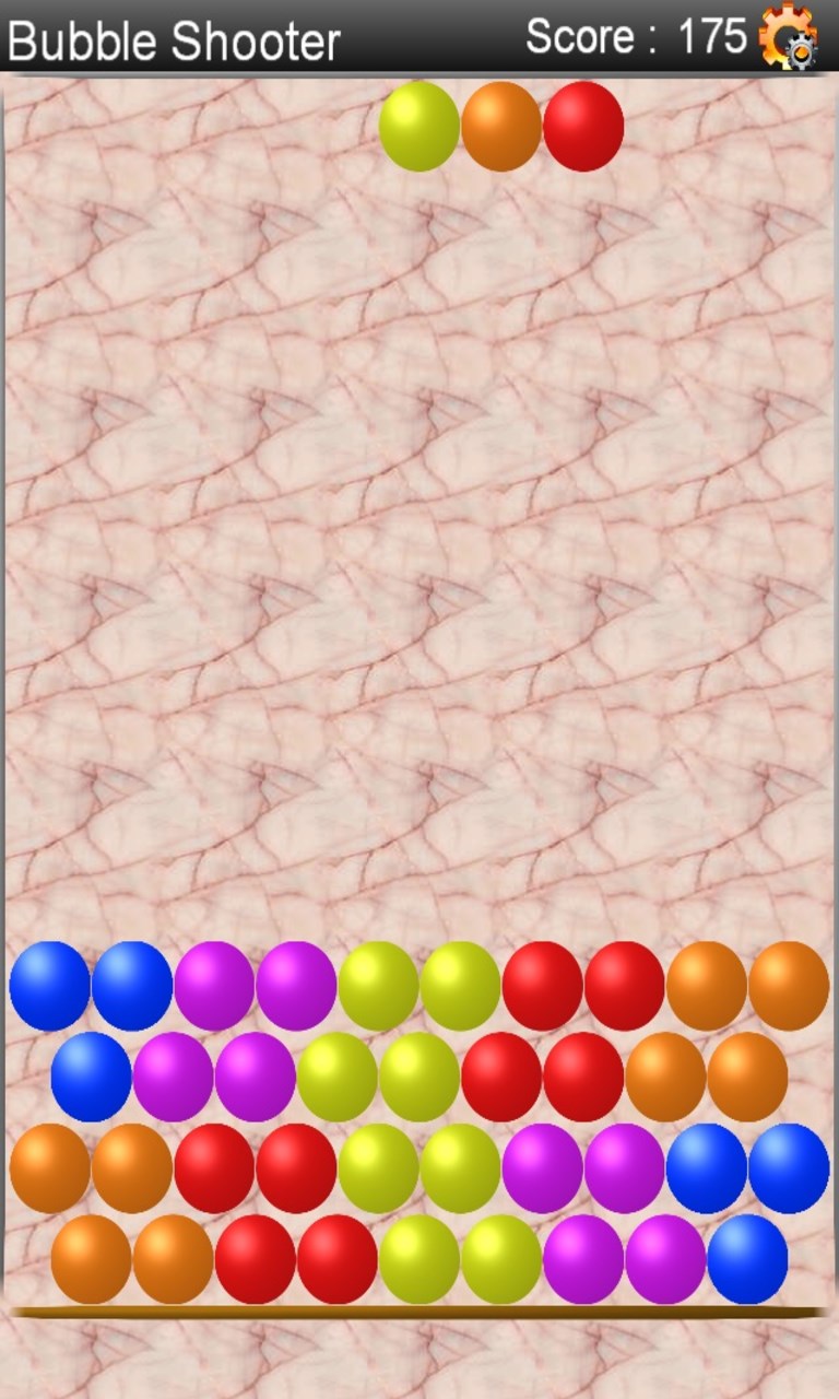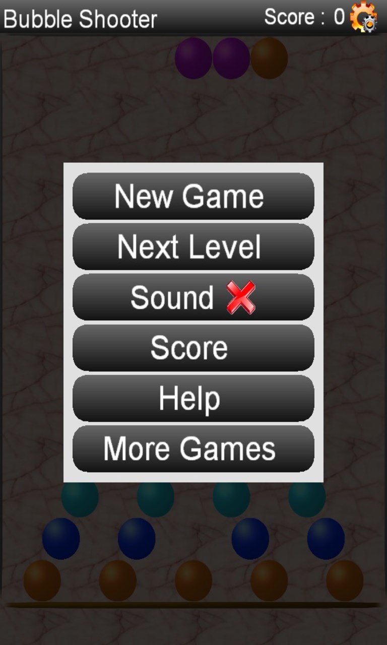 Aim and tap the screen to launch the next bubble to form a cluster of 3 or more. Clear the board before it fills up to move to the next level. Use menu (top-right corner button) to change level or to check score.