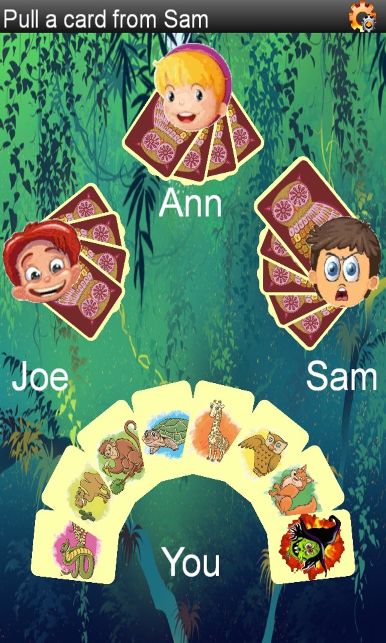 - Each player gets ten cards. If you have any pairs of cards (two cards with identical animals), click both cards to discard them.