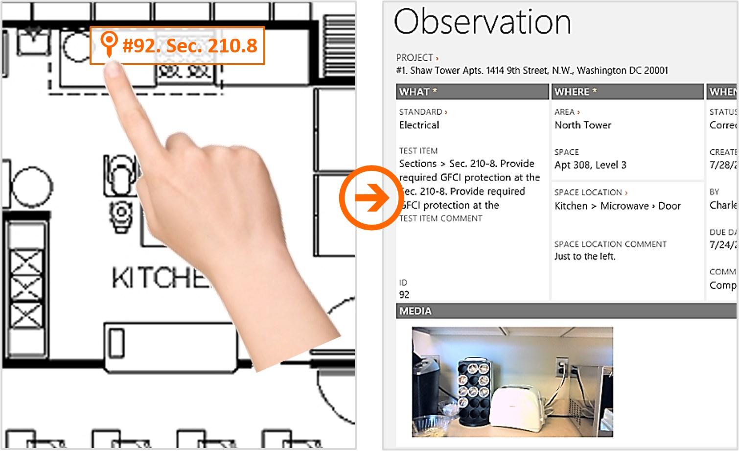 Squared Away® is fast and thorough: Annotate a floor plan, take photographs, even add a completion date or select the responsible subcontractor.