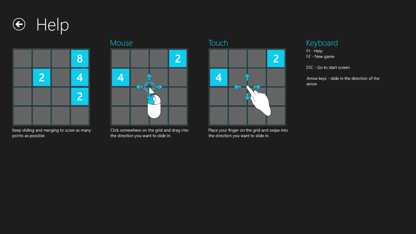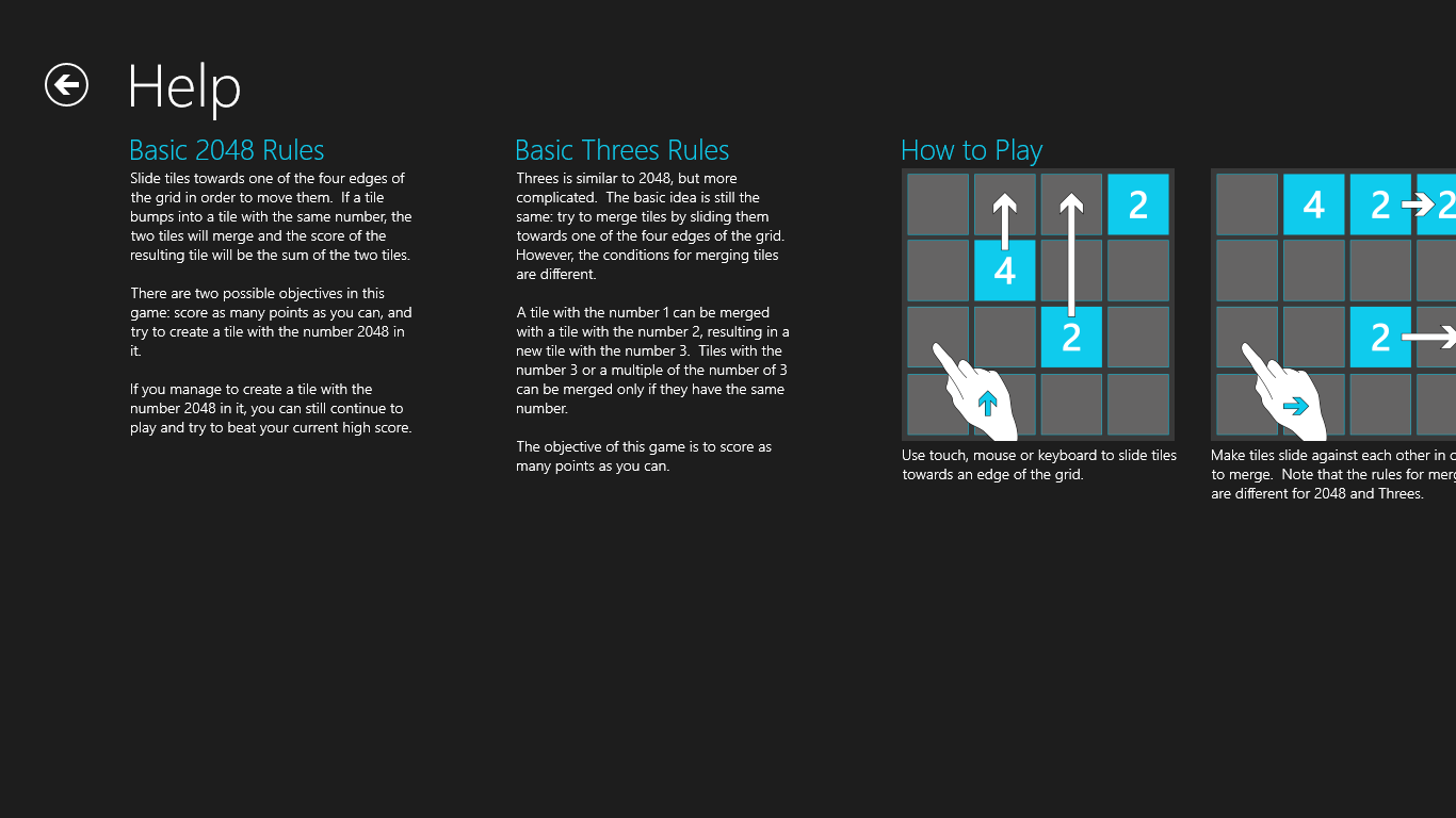 The game has a beautiful, intuitive design that supports touch, mouse and keyboard. Both types of games can be played in a 4 x 4 or 5 x 5 grid. Personal high scores or 2048 tile scores can easily be shared with your friends using the built-in sharing functionality.