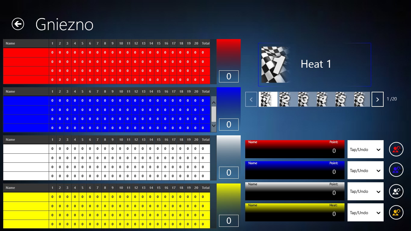 Just Tap the position for the rider over the finish line and system keeps track of all the points.