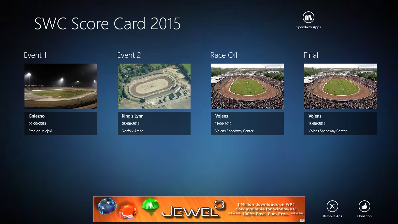 Score cards for the Speedway World Championship.