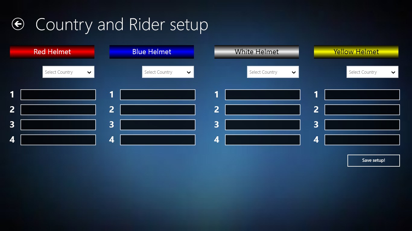 Setup of the countries and then the riders and the it is ready
