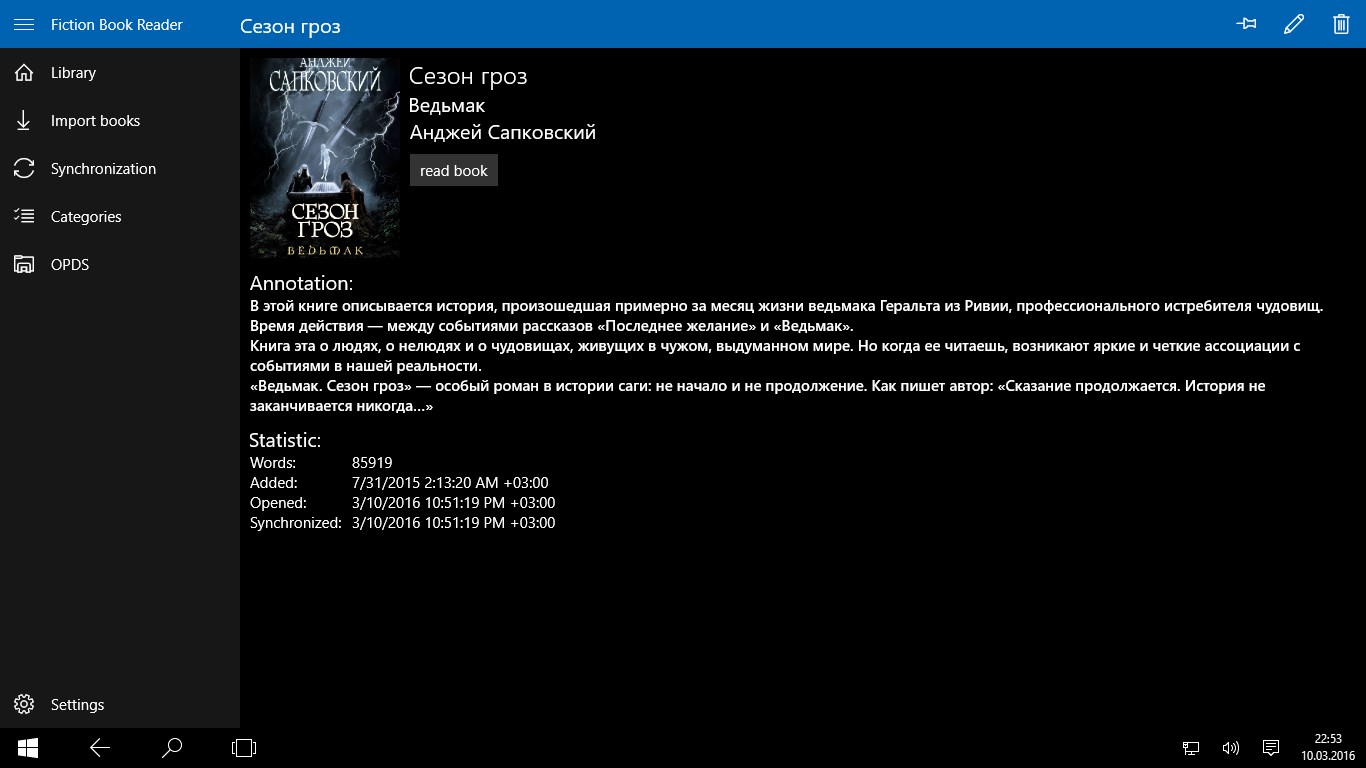 Fiction Book Reader is an application for reading e-book on Windows 10. A distinctive peculiarity of the app is pleasant design and ease of use of the rich app functionality. Our goal is to create the best application for reading book on Windows platforms.