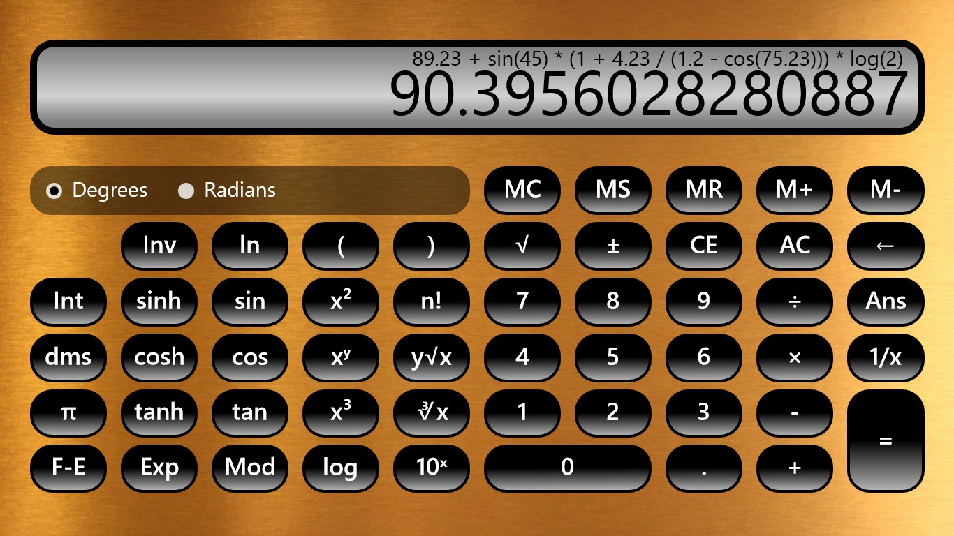 Bigger Calculators app is the big brother of Bigger Caculator app. It builds on it and provides the same big awesome interface, without Ads or clutter, but with better user experience and is a beauty to look at. Bigger Calculators currently has two calculators packed in it: a standard calculator and a scientific calculator. Complex mathematical expressions can be evaluated in Scientific calculator. So it caters for both general as well as scientific or engineering calculations. It's perfect for casual, professional and academic purposes.