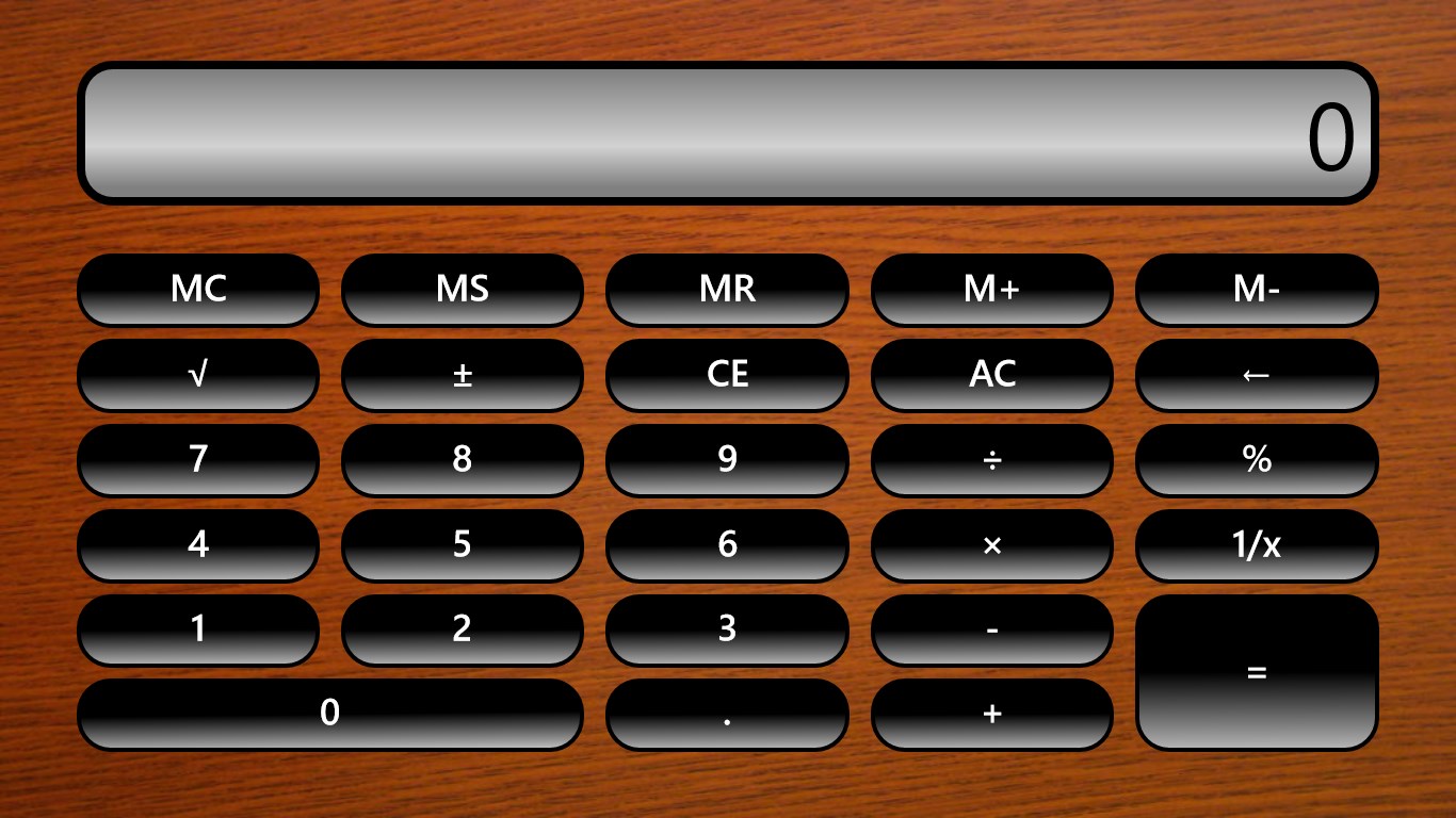 This is the first version of Bigger Calculators. It consists of Standard and Scientific calculators. It allows users to change background, which it remembers and displays when the calculator is next brought up. There are several backgrounds to choose from. There is support for numpad, keyboard, % key in Standard calculator and mathematical expression parsing and evaluation in scientific calculator. There is support for docked mode too.