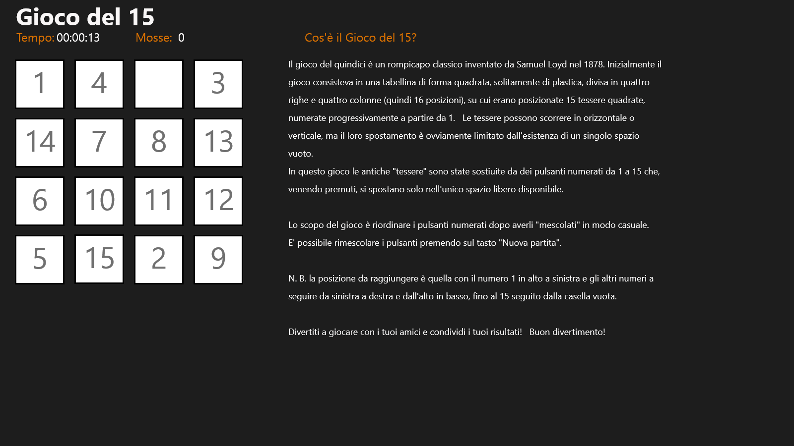 Lo scopo del gioco è riordinare i pulsanti numerati dopo averli "mescolati" in modo casuale.