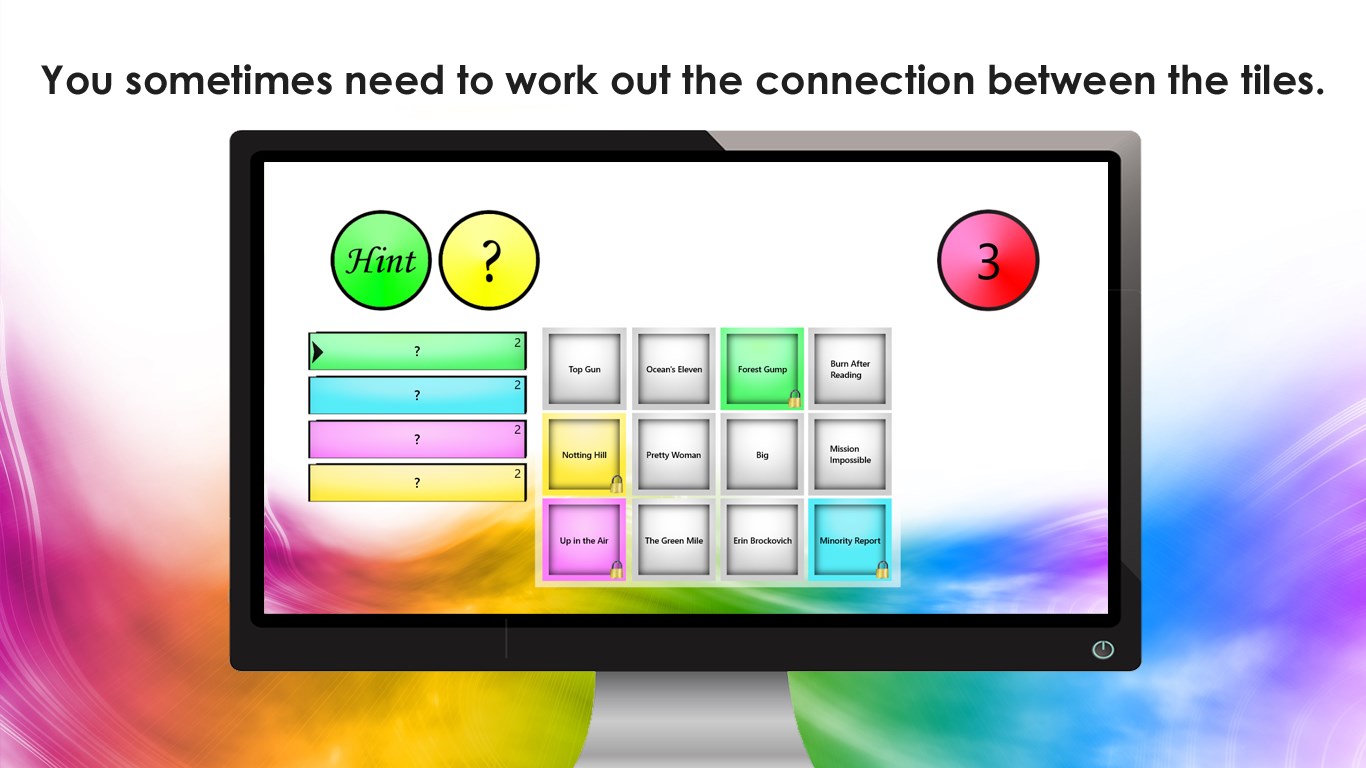 But as the levels go on, the games get harder and you'll sometimes not be shown a category at all. Your challenge then is to also work out the connection between the different tiles on the board.