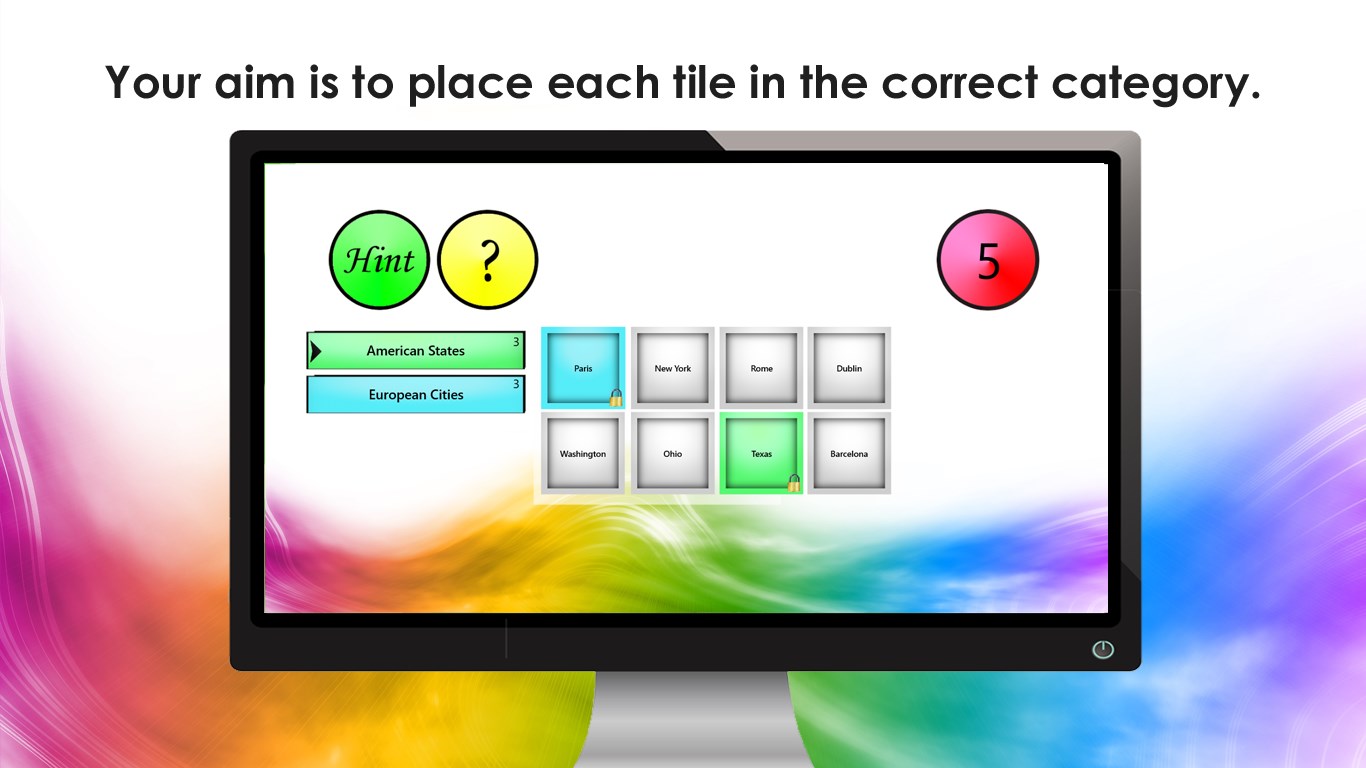 Your aim is to categorise each tile in the grid. Complete a category correctly and the pieces will lock into place.