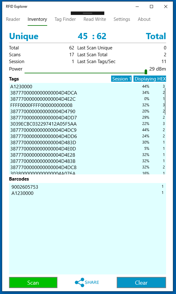 The Read/Write page now displays data read from tags as ASCII, when valid.