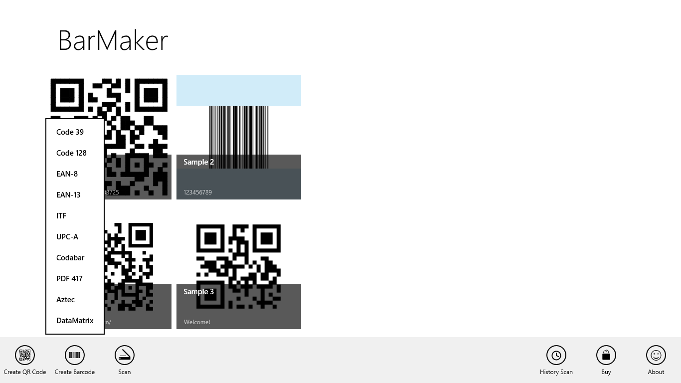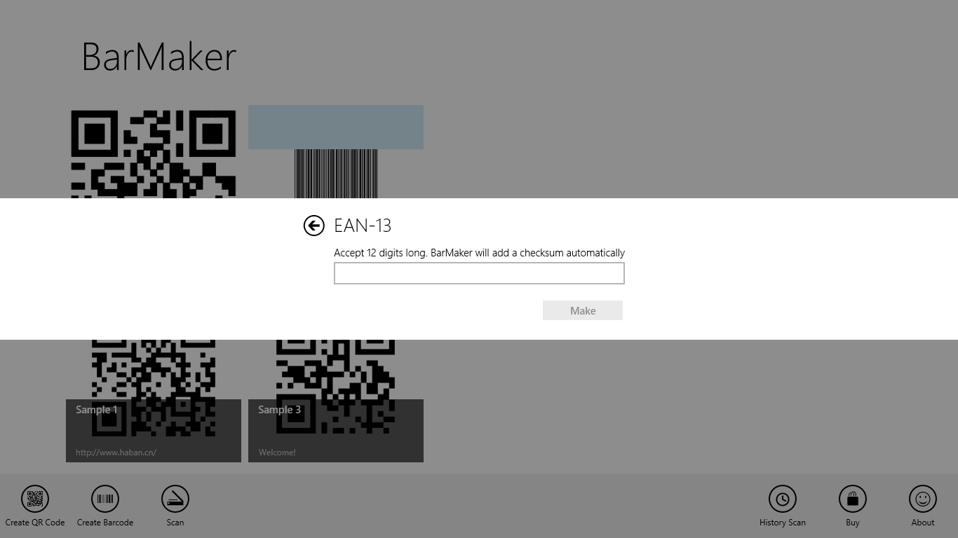 BarMaker is a convenient tool that help you create QR Code or Barcode images. You can use it to create/scan QR Code or Barcode. You can custom the QR Code or Barcode you created, and save into Multi-format. It also supports scanning for white barcodes on black background.
