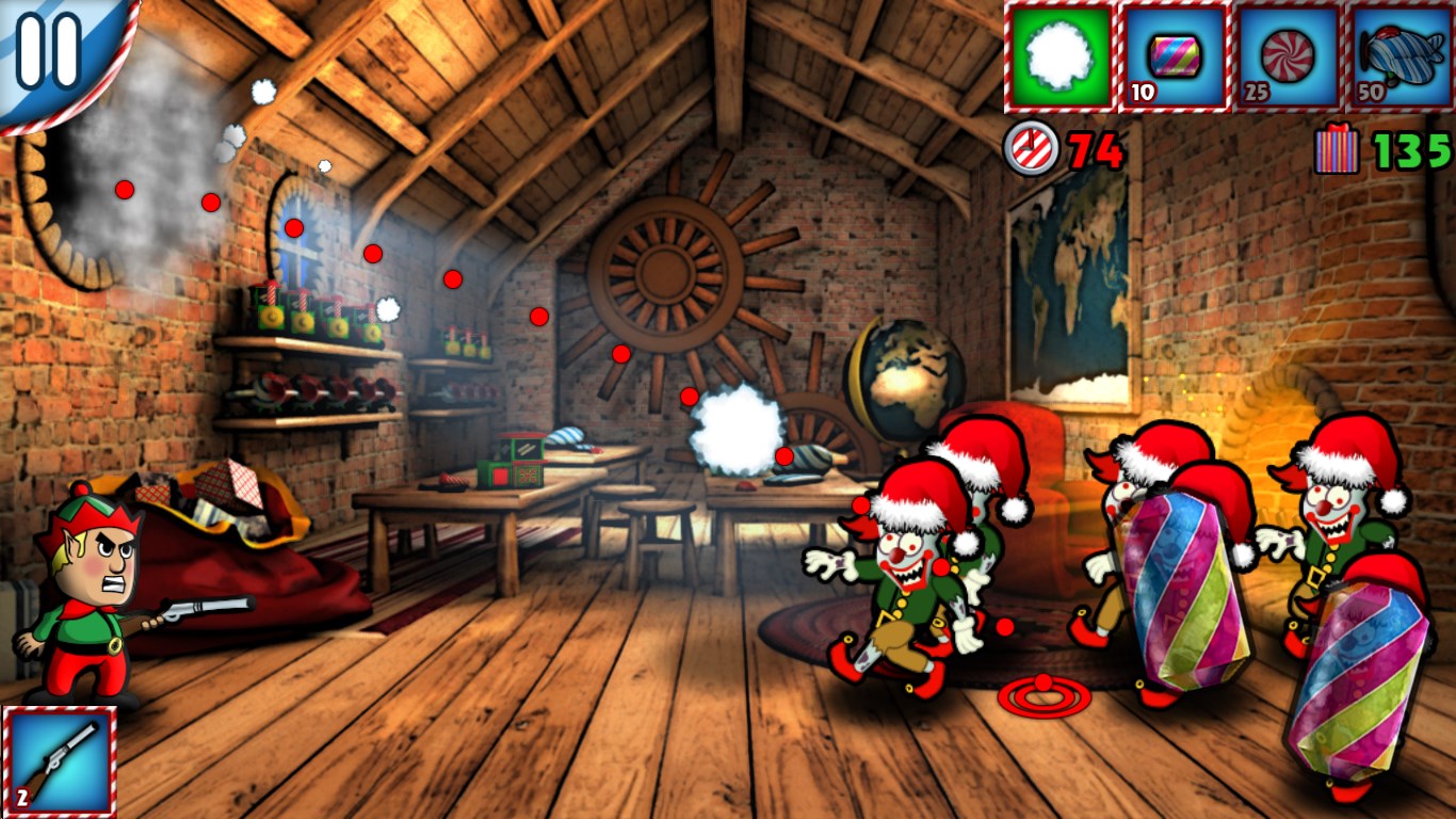 Stellar art and animation.70 progressively difficult missions of addictive physics action. Starts off easy before leading you into over the top action.Bring a friend! Up to 10 point multi-touch support for crazy ragdoll tossing action!Survival Mode! How long can you survive against wave after wave of zombie elves?Bonus rounds! Launch giant snowballs and smash invading zombie elves! Unlock more attacks as you progress.14 unique zombie types, each with their own powers, plus 5 big bosses to battle!15 physics based weapons to deal out massive damage to the zombie elf horde! Upgrade them in the Workshop!Epic boss battles!