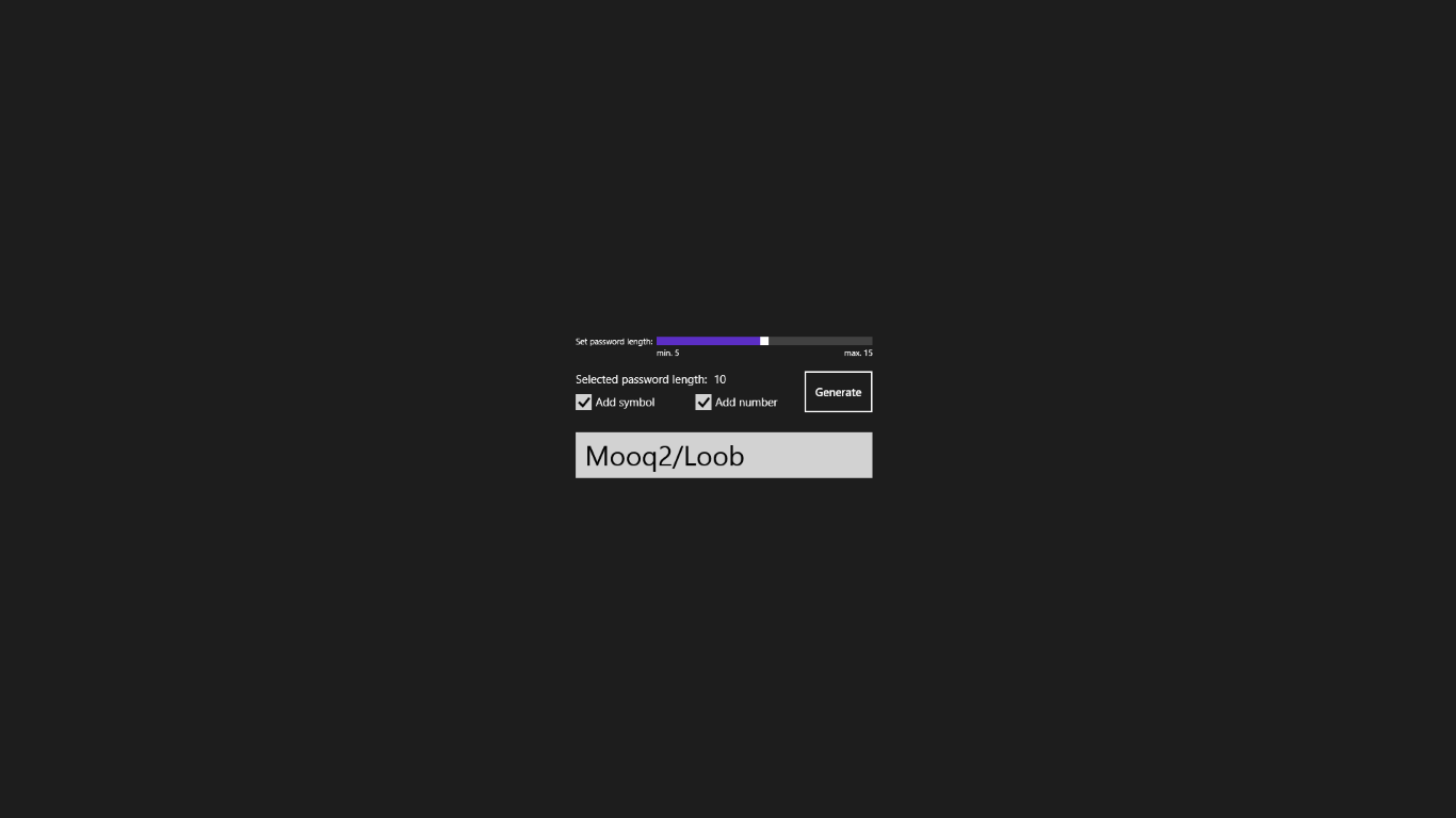 This password generator app, creates secure pronounceable passwords which you easy can remember. With a random combination of vowels and consonants it creates passwords built of syllables with different length. You can even add symbols and a number to your password if you desire.
