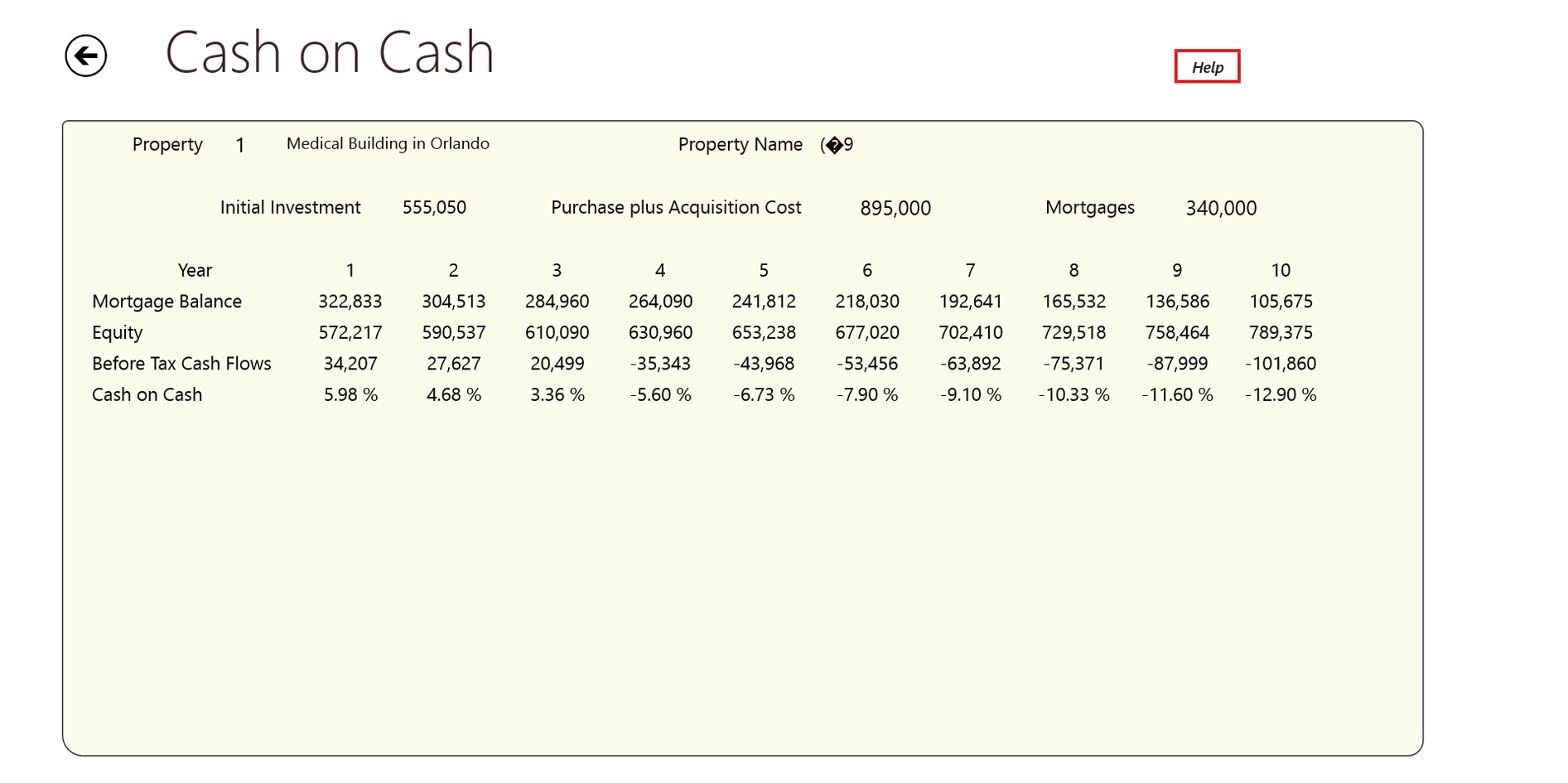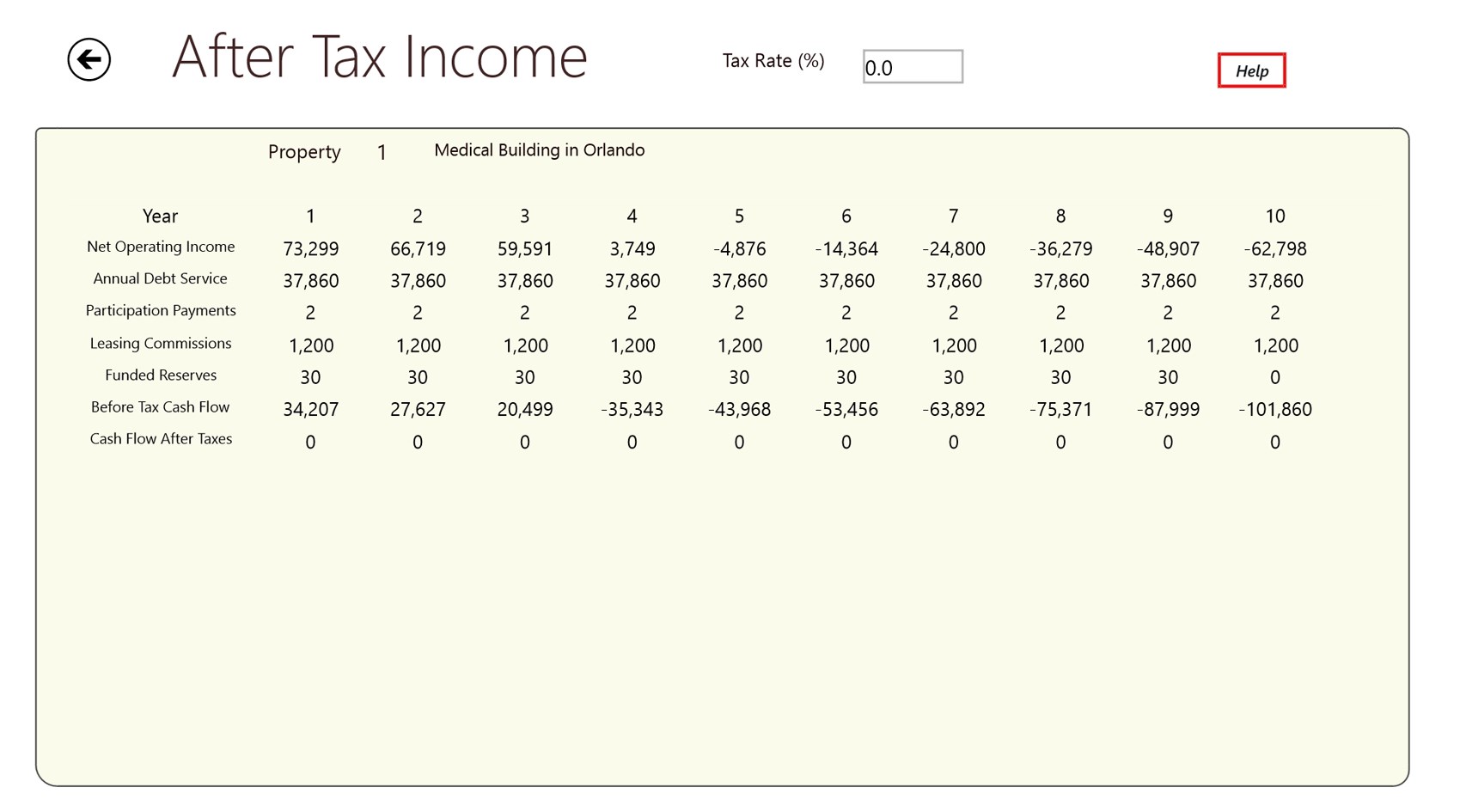 On the cash flow display you can see the detailed rental cash flows before and after tax and will see how the debt service impacts your rental cash flows.