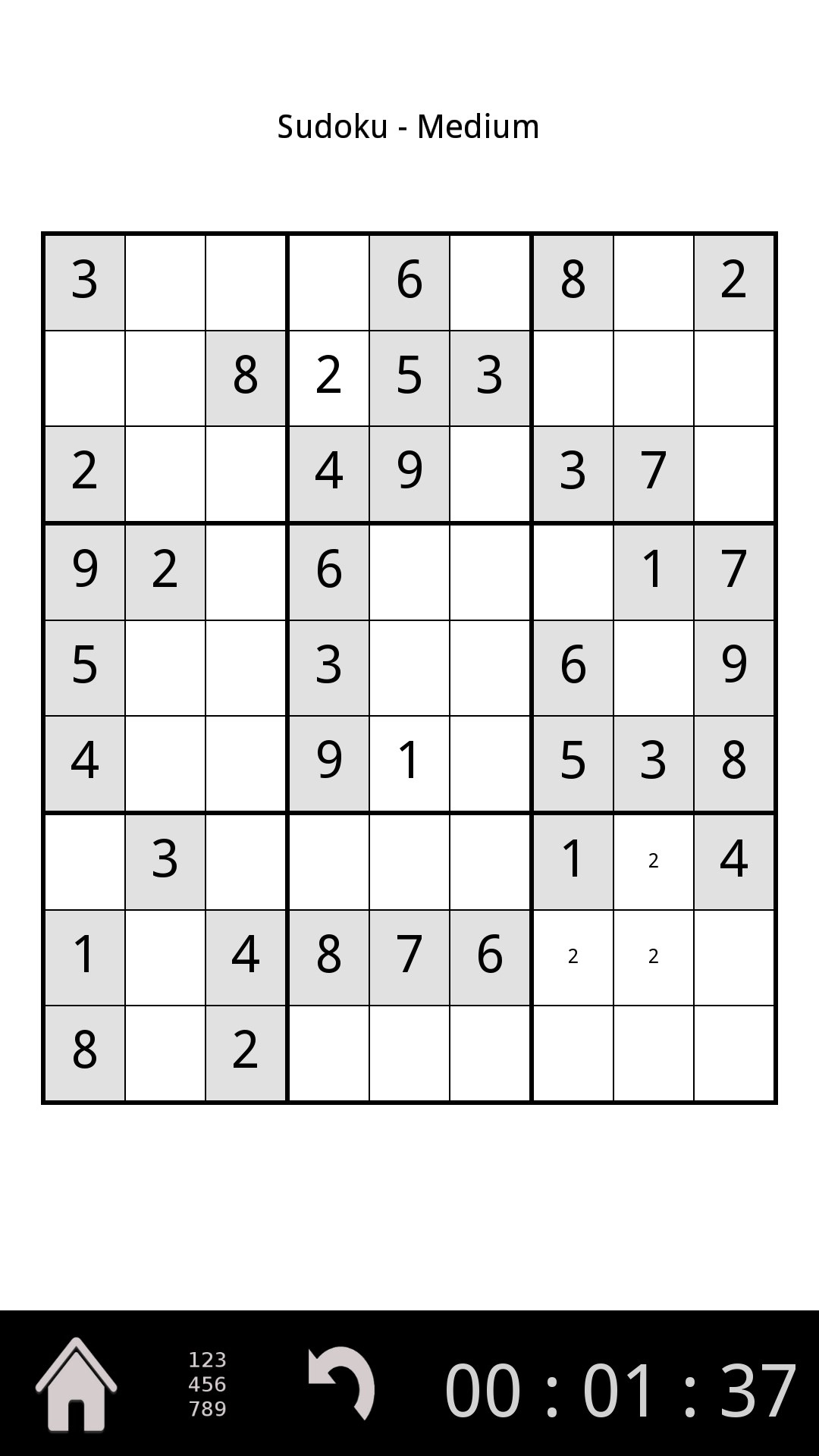The object is to fill empty cells with numbers between 1 and 9, so that number should appear only once on each row, column and region.