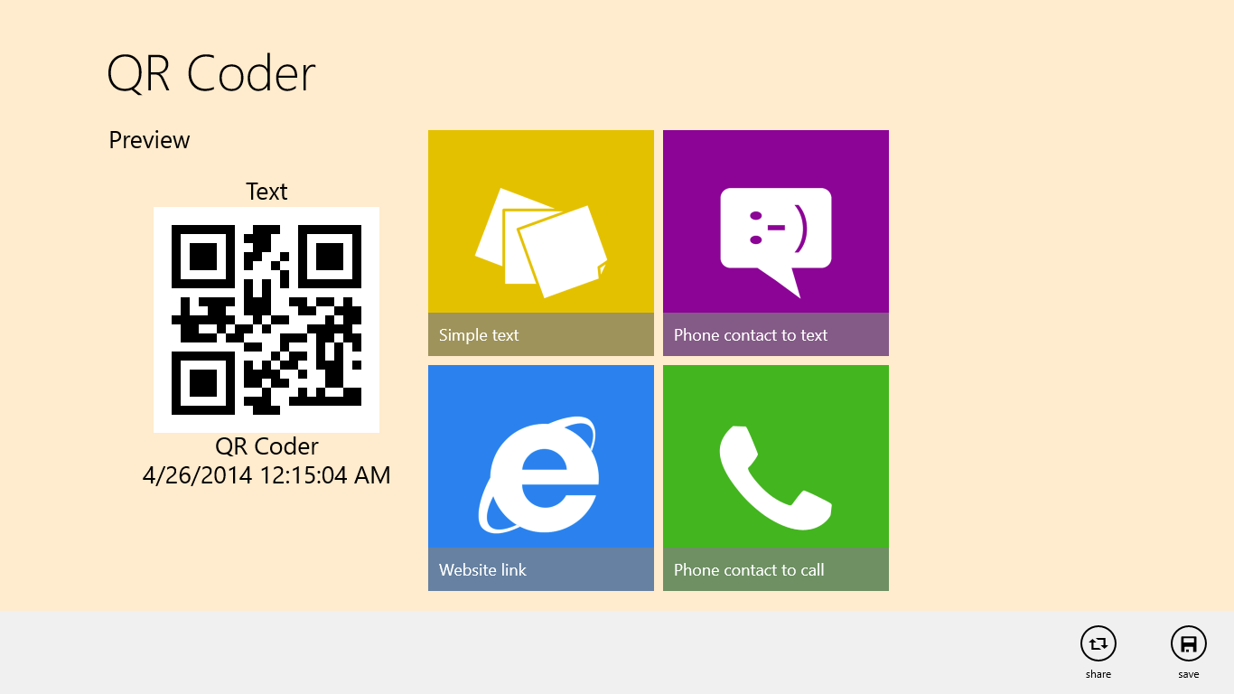 QR Coder helps create QR Codes for text, url, sms and phone calls.