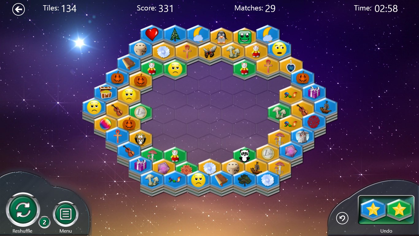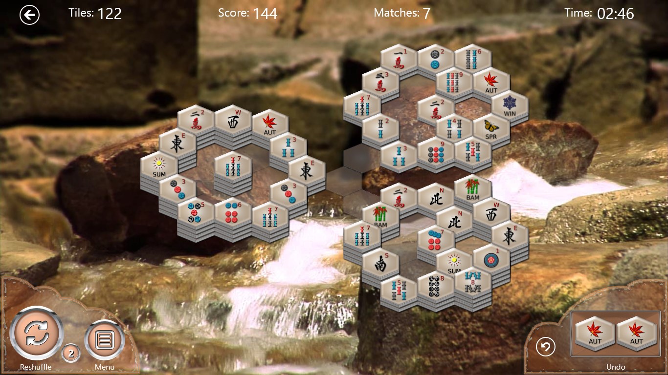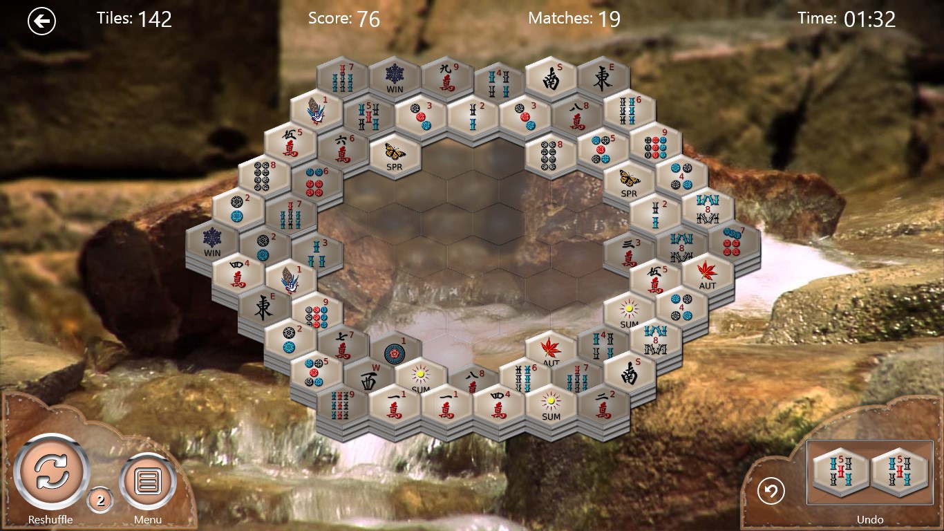 Three levels of difficulty - perfect for beginners and experts alikeThree different themes with stunning scenery and unique tilesSupports touch screen and mouseShuffle, hint and undo - for relaxing, stress-free playVery simple to learnExtensive statistics
