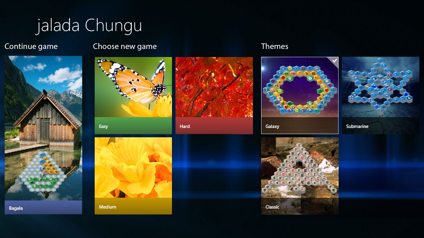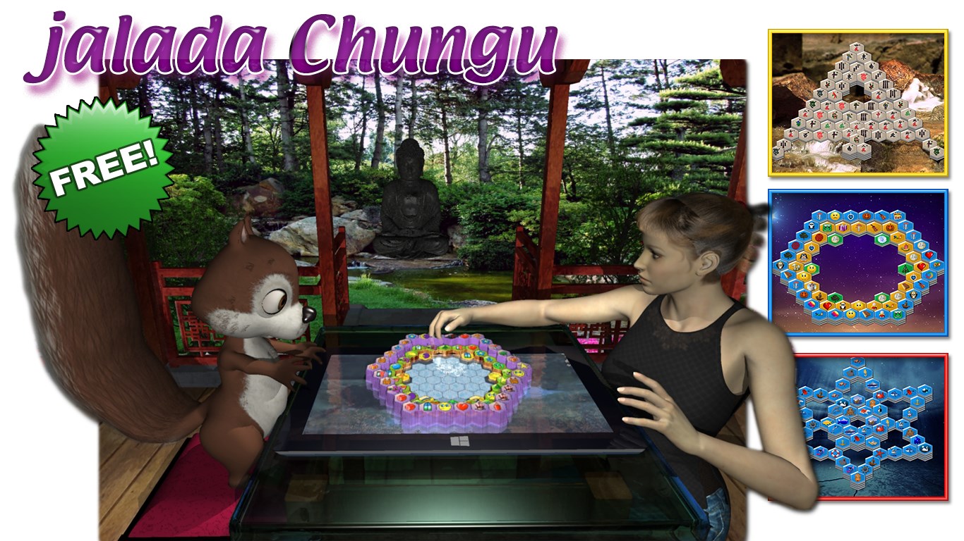 Your mission is to remove all tiles out of the board by pairs. Select two free tiles with the same picture and they disappear while revealing new tiles underneath. Tiles can only be matched with other identical tiles, and must also be free to slide out of the puzzle. If the tile is locked in place it cannot be matched. Each puzzle has a different structure, which requires a new solution - often with a new strategy as well. After successfully solving a puzzle, jalada Chungu will award you with a new challenge.