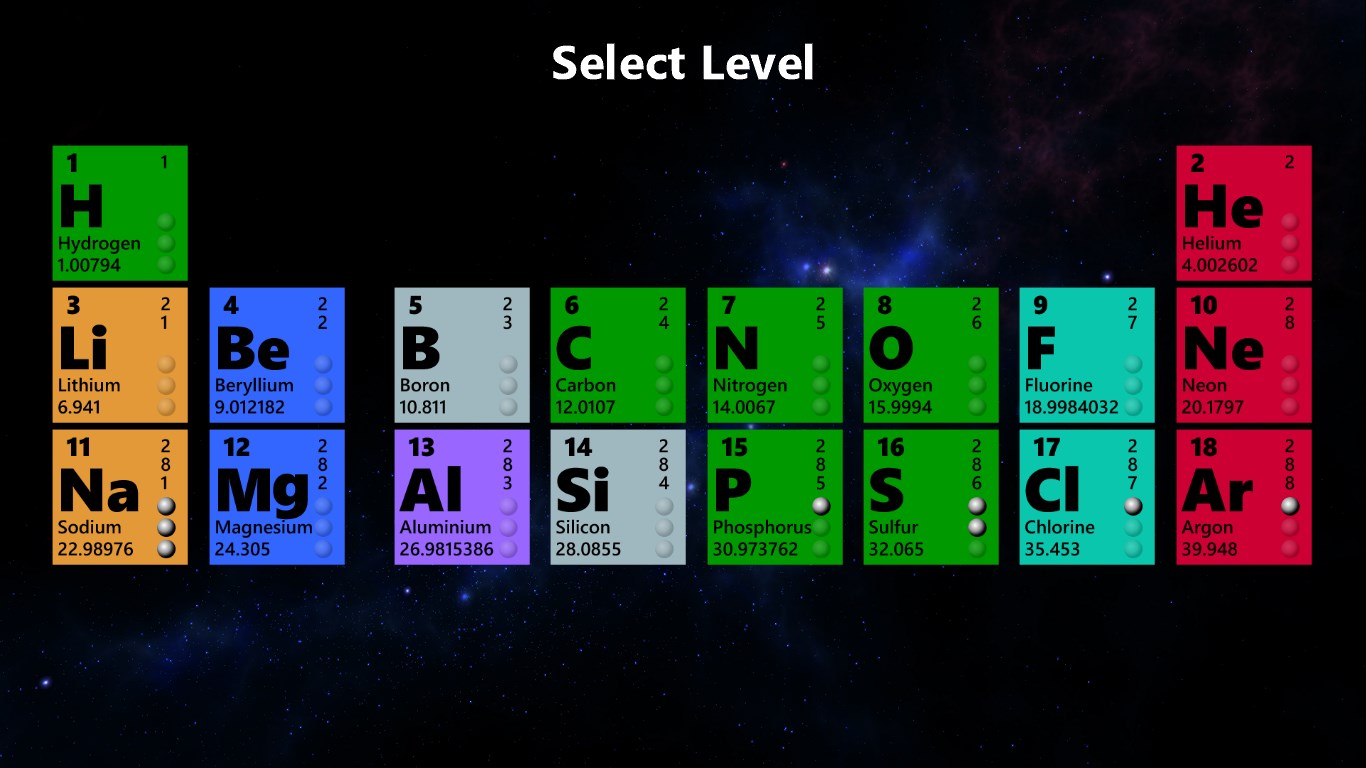 You will also be pitted against the timer on each level. Can you find the perfect solution to each element and achieve the perfect 3 electron rating?