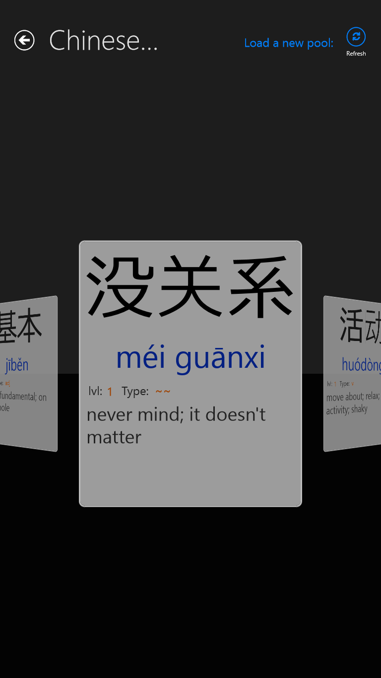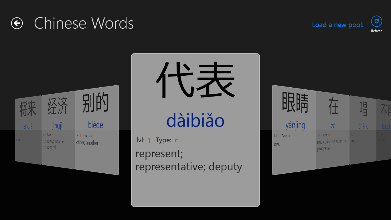 You also can refresh a new pool of Flashcards by clicking the "Refresh" button located in the top-right of the application.
