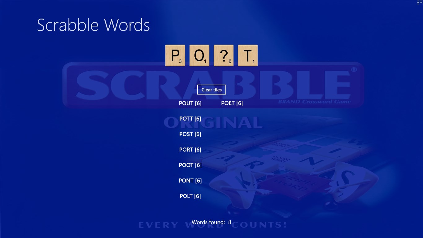 Step 2: Search for ScrabbleWords