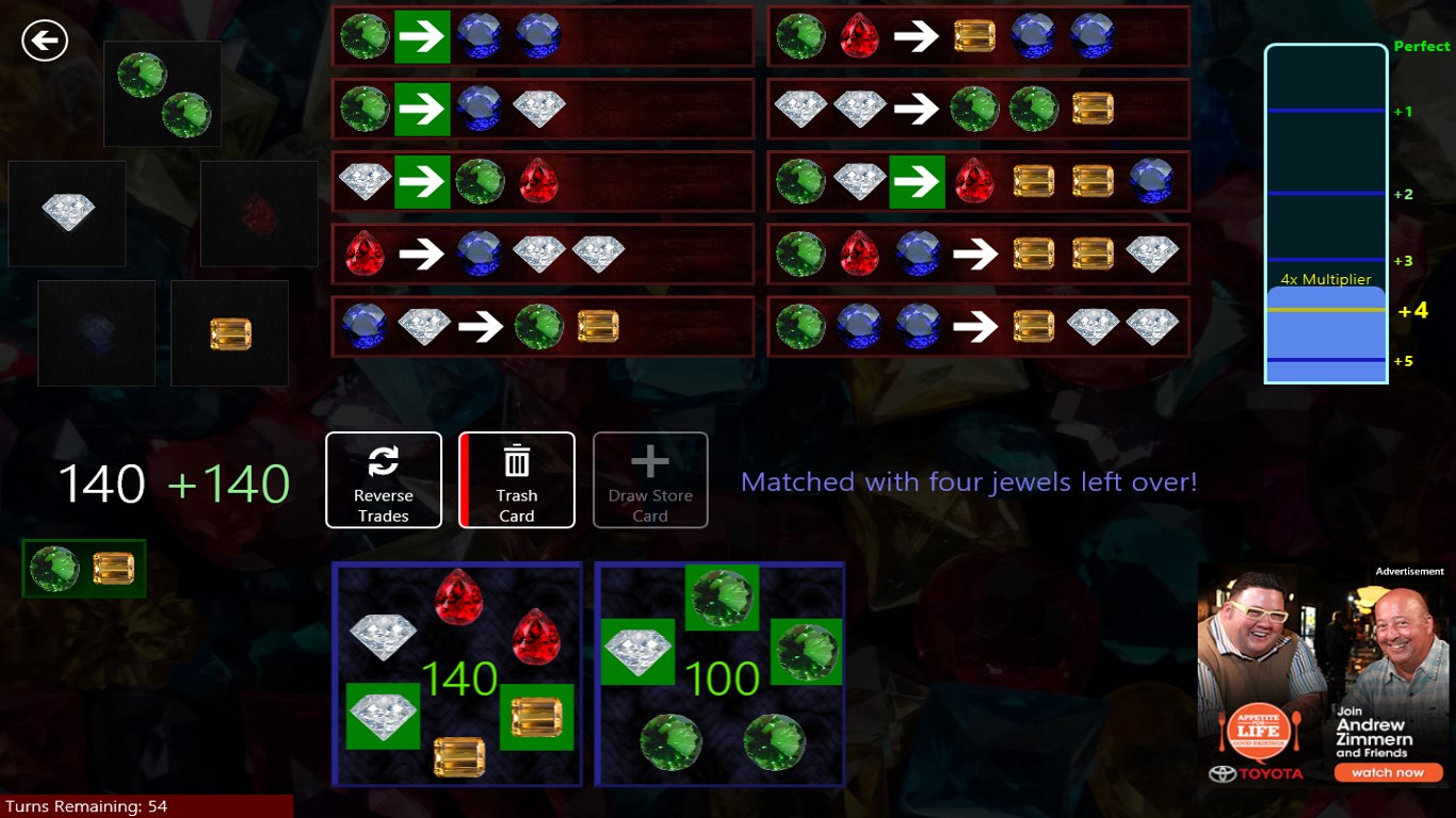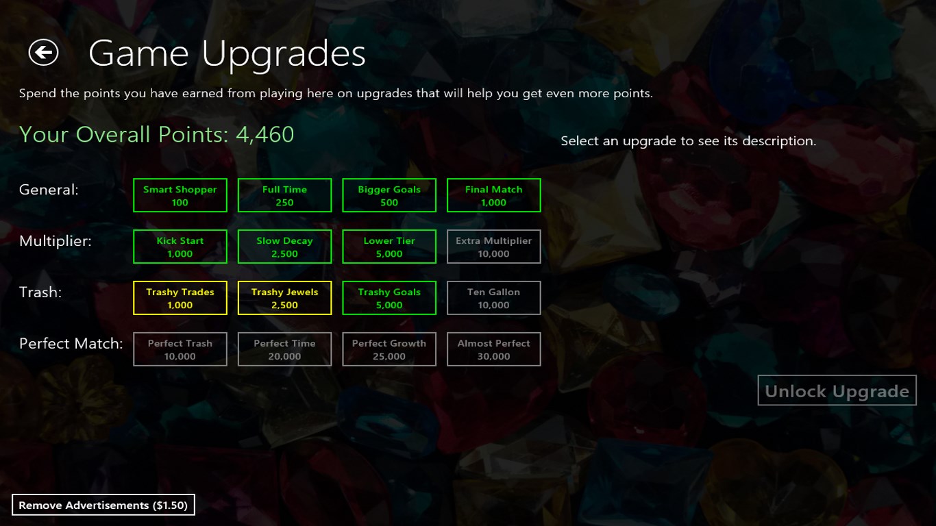 Engaging puzzles for how to best convert your jewels to match the cardsTry to earn all of the game upgrades to get really high scores