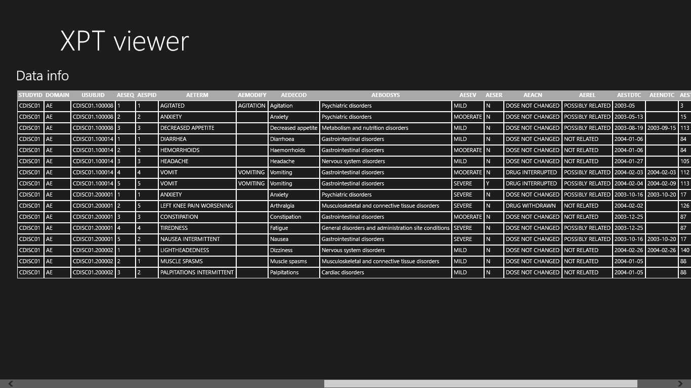 SAS transport (XPORT) file viewer