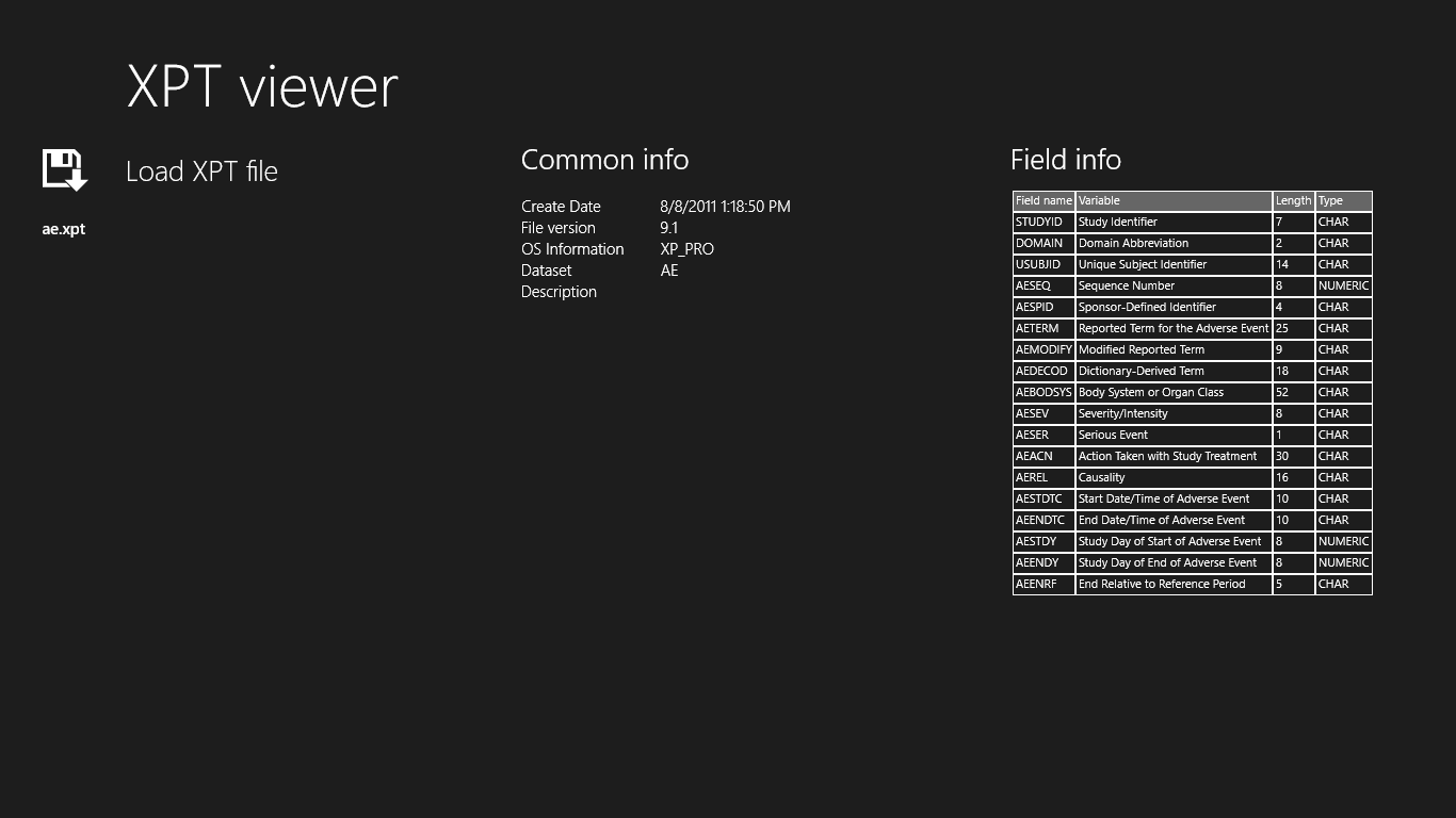 The program is designed for quick viewing fields and data in the transport file XPS without using SAS