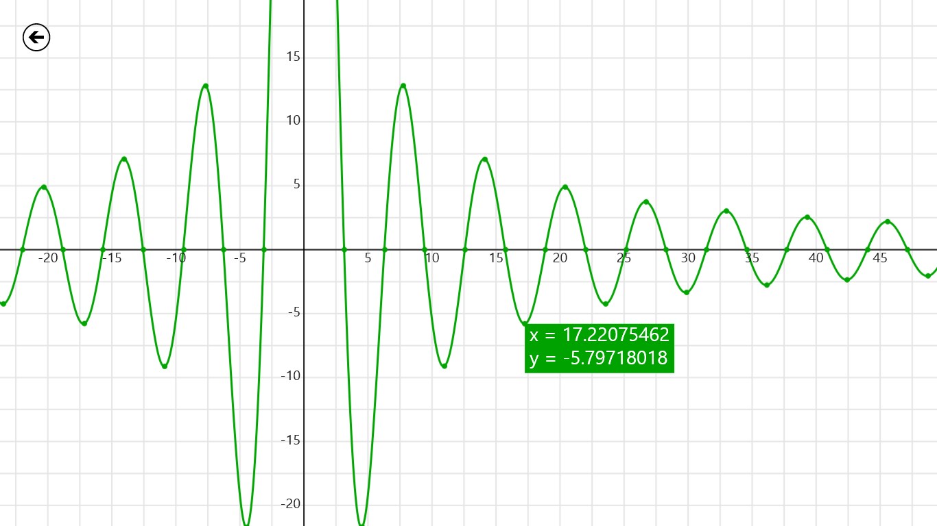 Powerful numeric solverGraph plotter with two-fingers pan and zoomMaxima, minima and zero crossing detectionHistory list with last used equationsFree and without ads