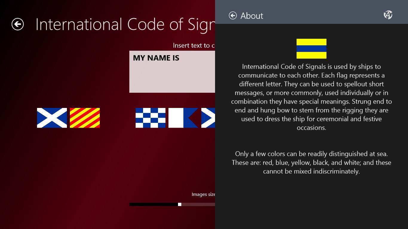 You can code words to one of these alphabets as well as decode from them. Thanks to this app you can also save converted text as a png or jpg image on your device to future usage. In addition for Morse code there is an option which enables to listening converted text in Morse code as a sequence of on-off tones.
