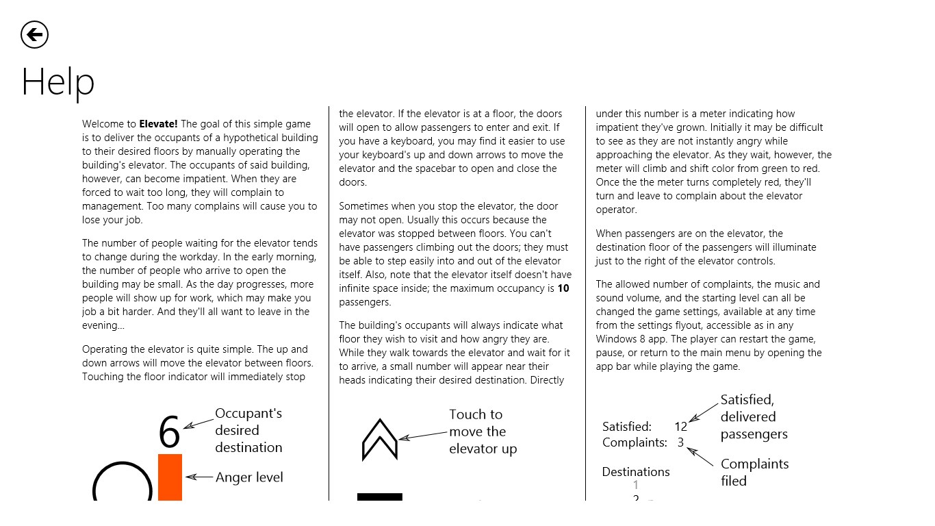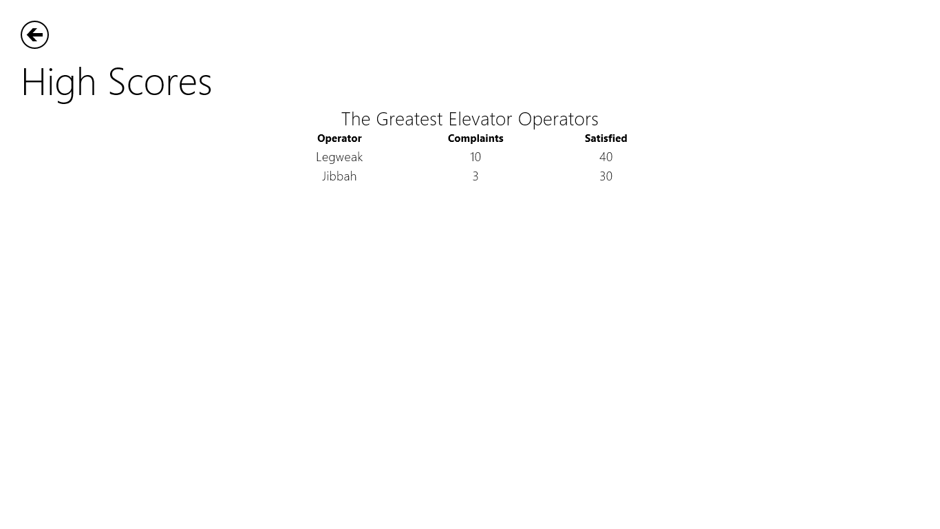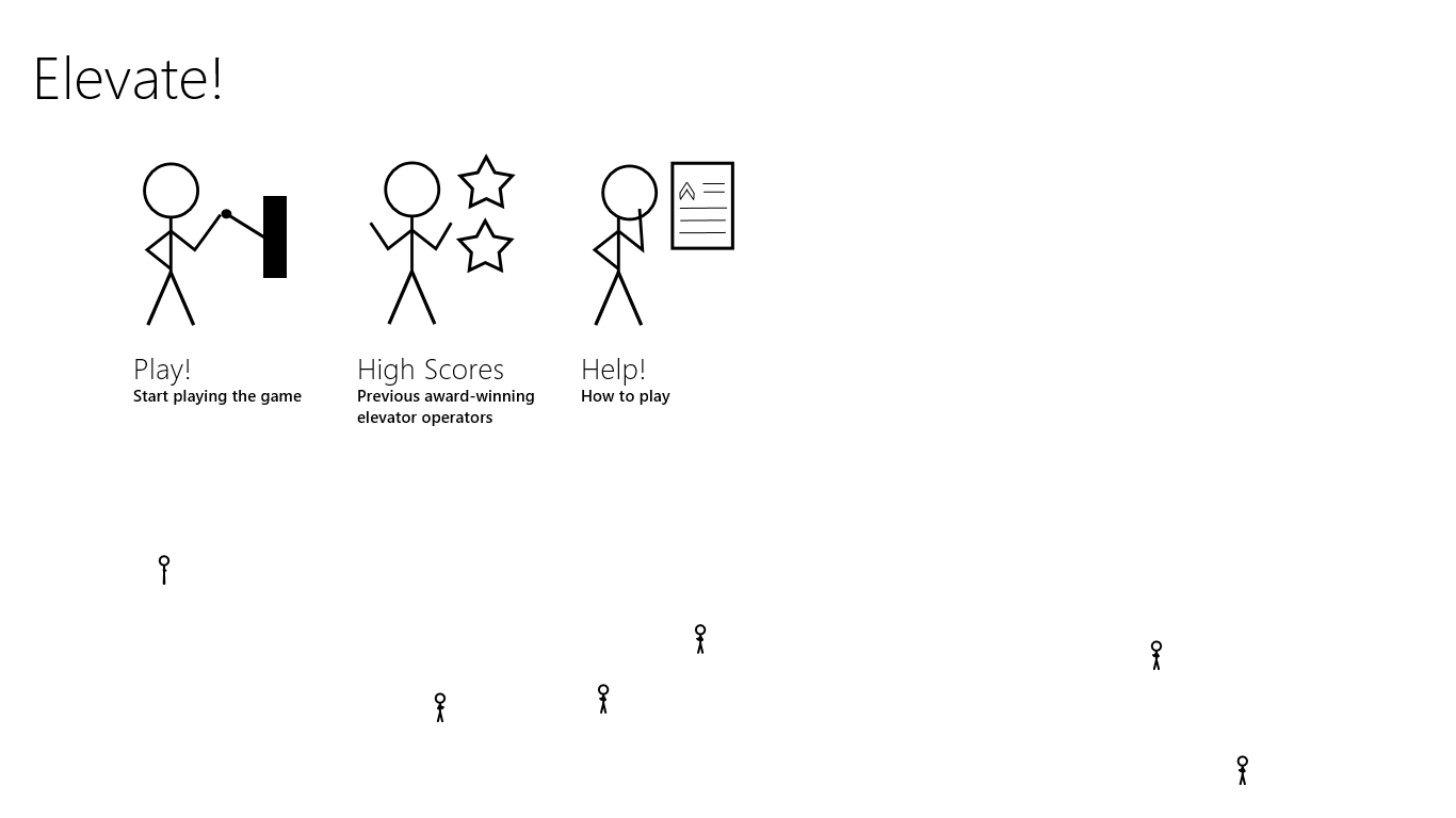 In your new position as an elevator operator, you're tasked with delivering the stick-figure occupants of a 10-story building to all of their desired floors. In the morning, your task might be easy, but as the day progresses and more people arrive, keeping all the building's occupants happy will become more difficult. Try to be efficient because nobody likes wasting time waiting for the elevator. If too many complaints are registered, you'll lose this new job.