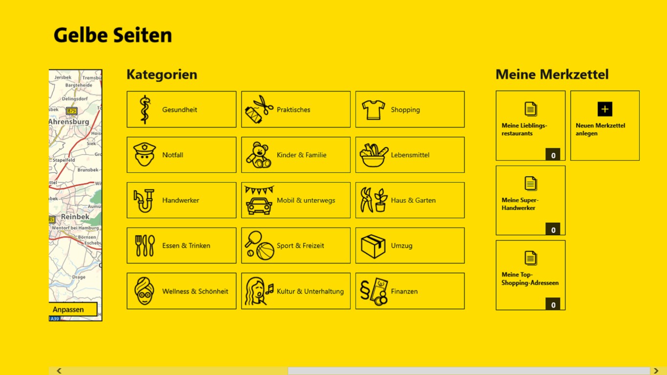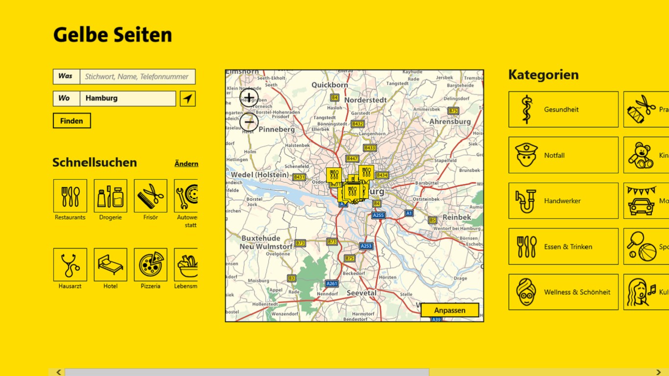 Mit der App von Gelbe Seiten für Windows 8 finden Sie ganz einfach den passenden Dienstleister. Von Apotheke über Kino bis Zahnarzt: nutzen Sie den Service von Deutschlands bekanntestem Branchenverzeichnis.