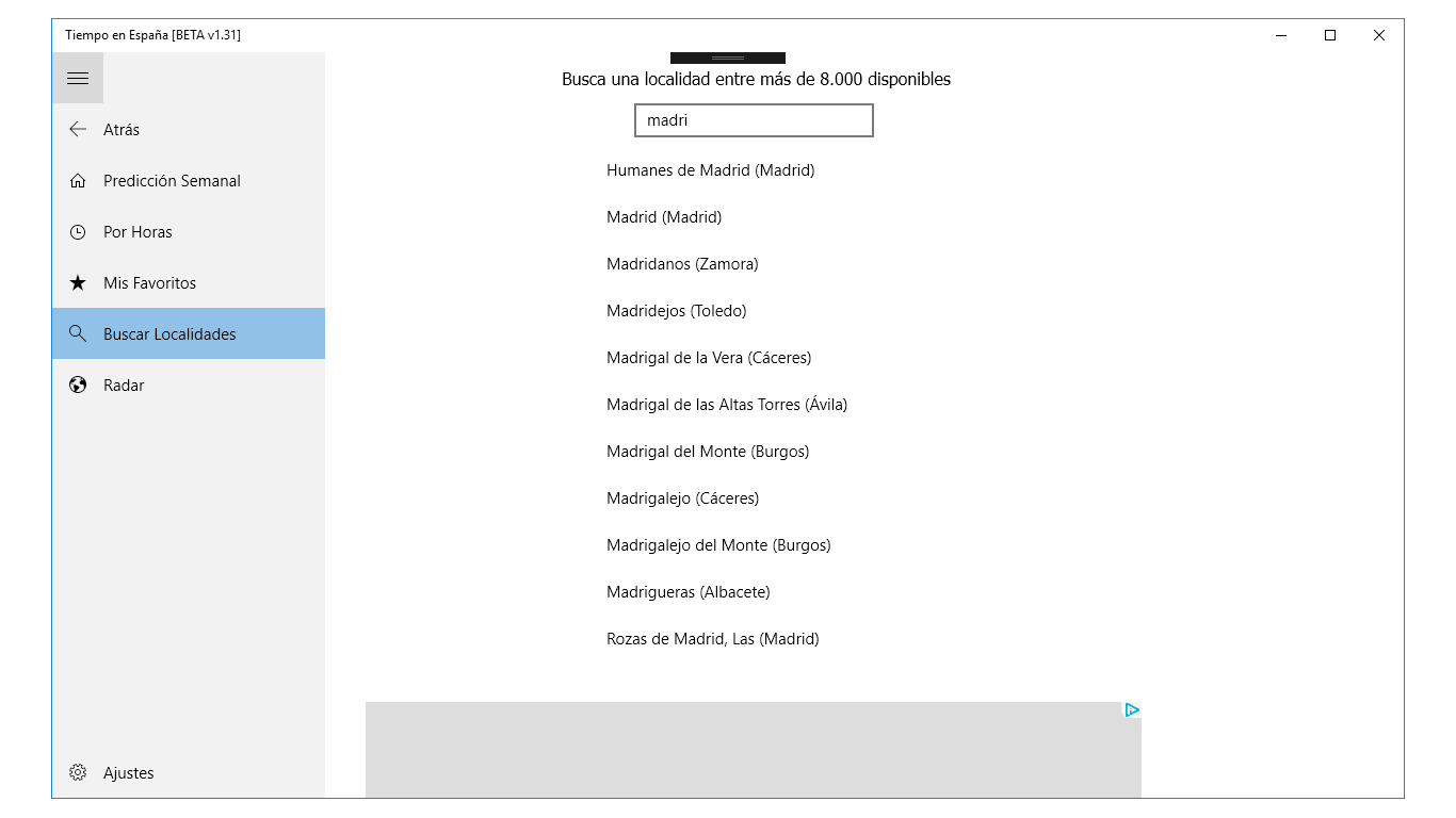 -Programa de información sobre predicciones meteorológicas de 8.116 localidades de España con información elaborada utilizando, entre otras, la obtenida de la Agencia Estatal de Meteorología (AEMET)