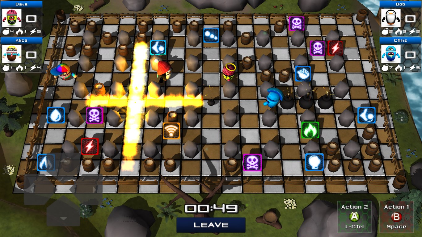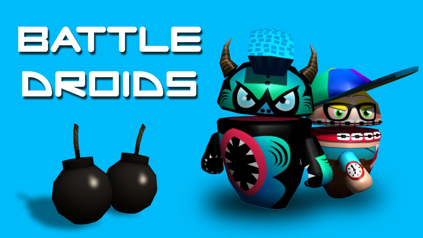 Customize your droid! Enter the arena against up to 4 players from all around the globe. Your goal is to defeat your enemies using your bombs. Collect and use different powers to gain advantage over your opponents. Watch out for the deadly curses that can easily cause you trouble. Battle Droids delivers one of the most exciting real-time multiplayer experiences ever for free!