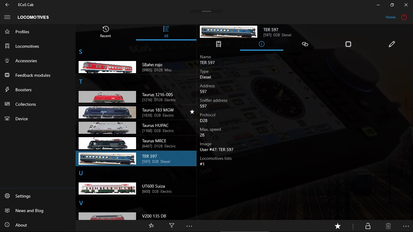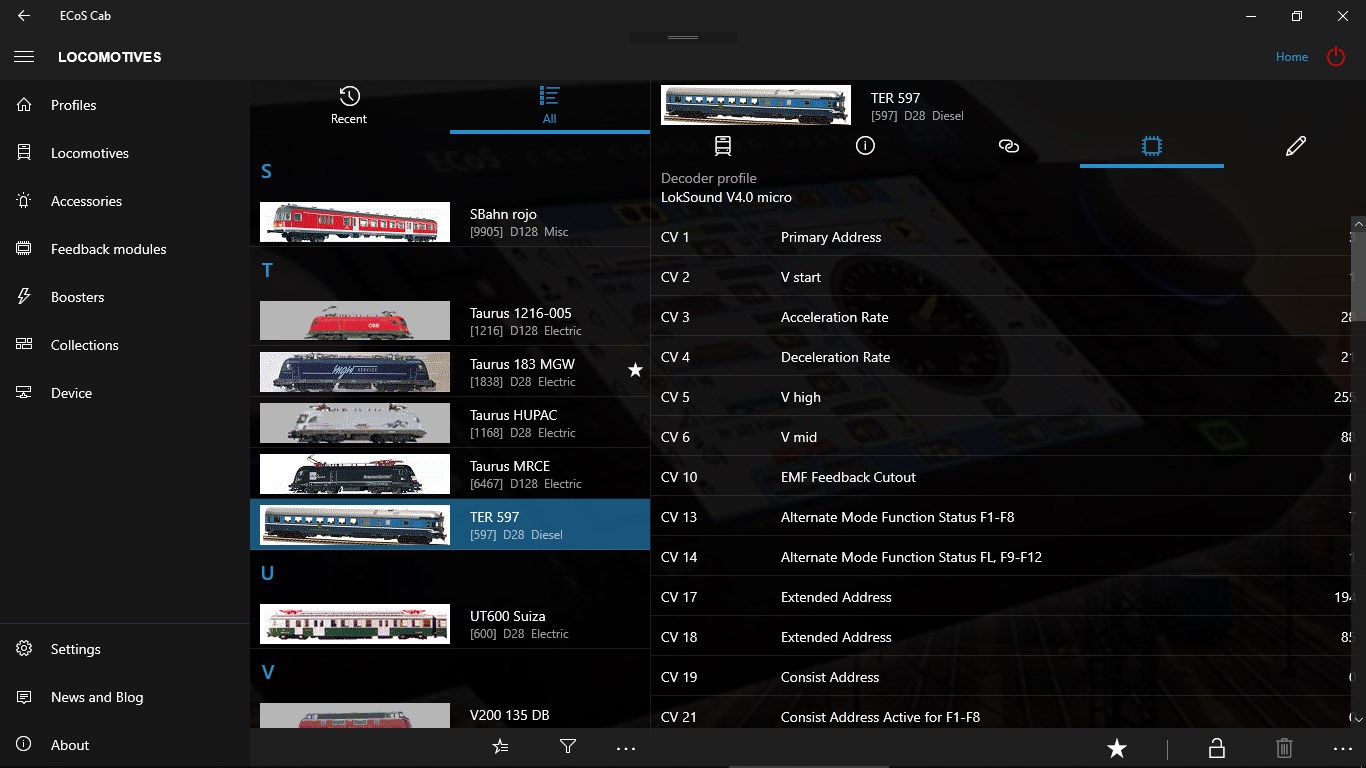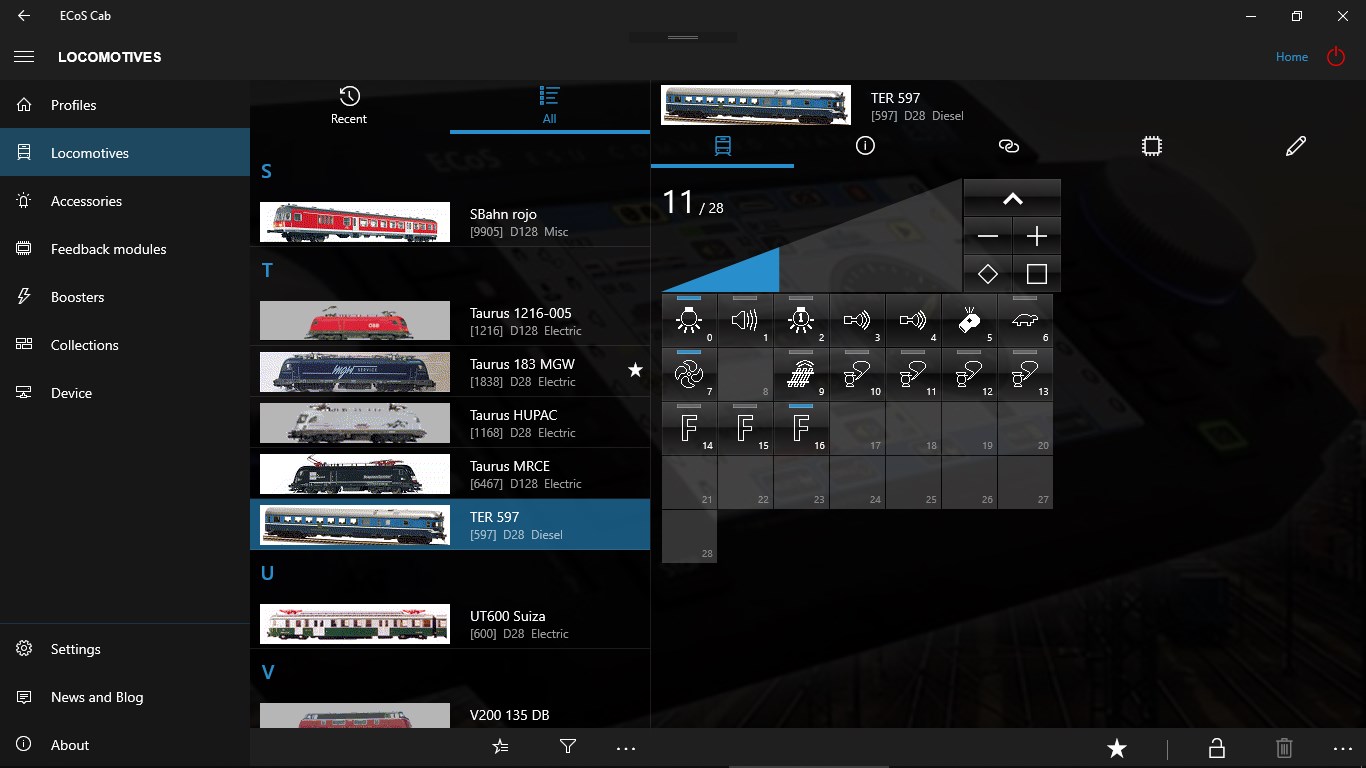 ECoS Cab is an application for controlling your ESU ECoS, ESU CabControl, PIKO SmartBox command stations with your Windows/Android/iOS device.