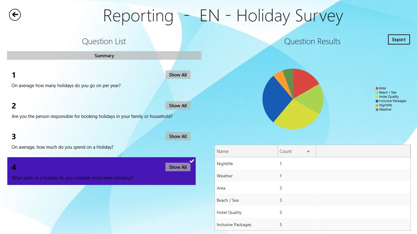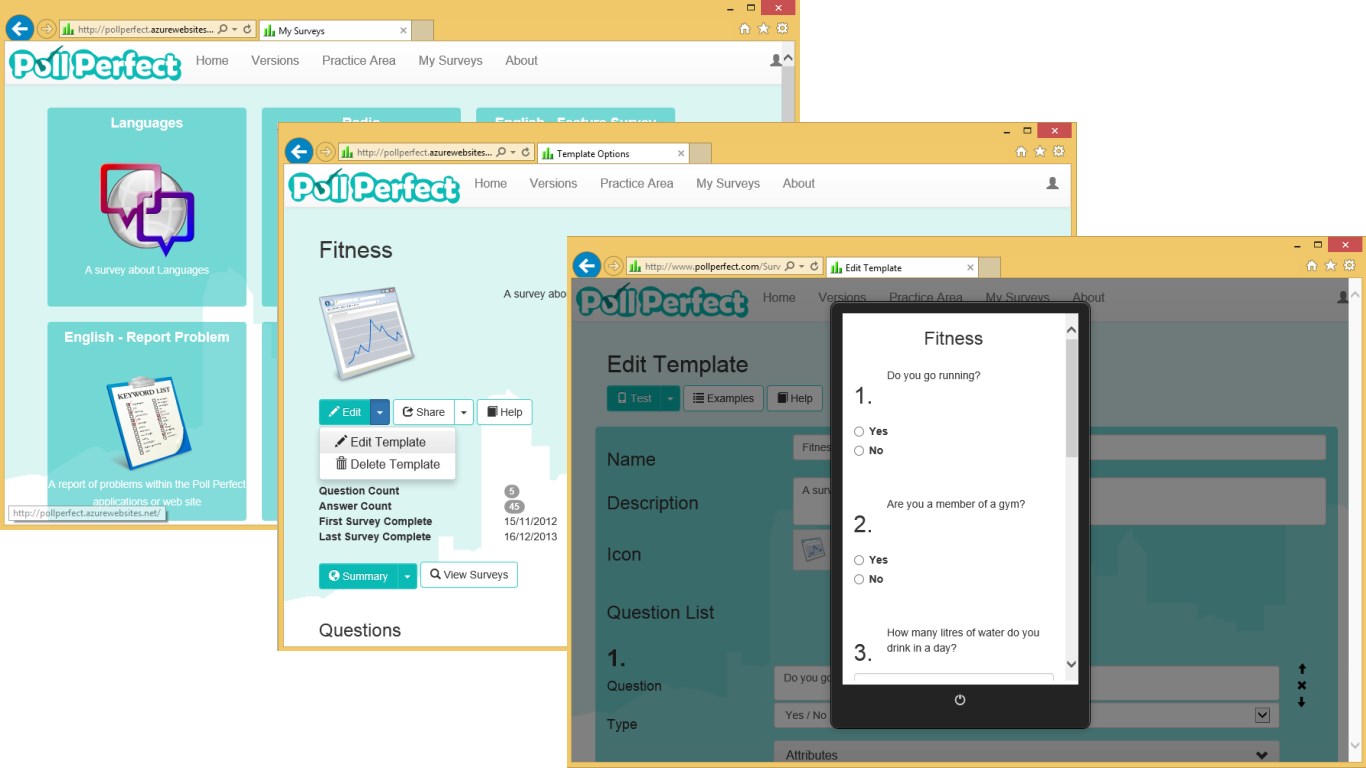 Poll Perfect is an easy to use surveying application. It allows anyone to quickly and effectively create bespoke surveys in minutes. These surveys can be completed to capture valued data. After the data is collected, reports are produced to highlight possible trends. The data can also be easily exported.