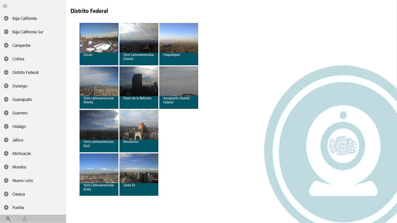 Web cameras in different parts of the country live 24 hours a day.Constant updates that add more cameras.Improved and optimized navigation for touch devices.You can share the shots using onedrive, mail and more applications.