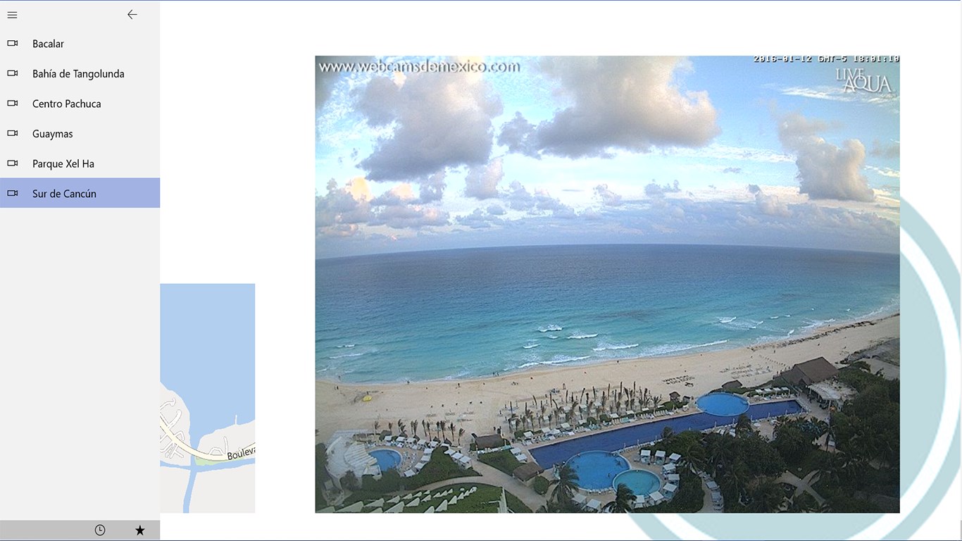 Camaras de Mexico allows you to virtually travel throughout Mexico. Enjoylive beaches, tourist areas and attractions around this beautiful country. Exploring Mexico is only a click away. The cameras are updated automatically every 15 seconds.