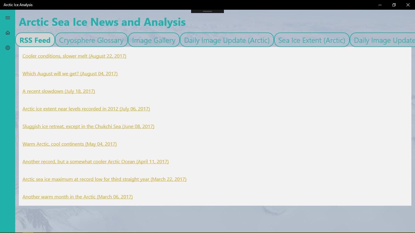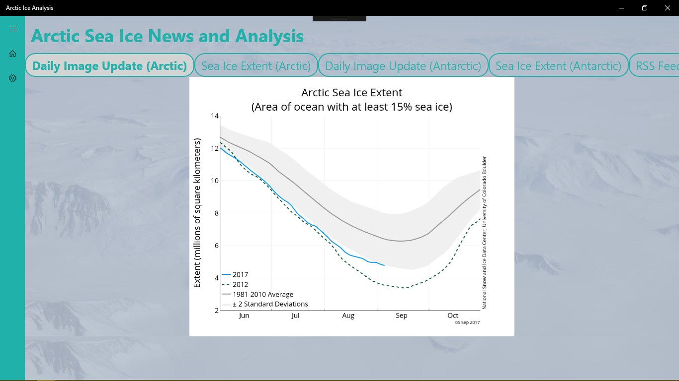 In addition, this app brings an RSS feed from the National Snow and Ice Data Center(NSIDC) right to your mobile and PC.