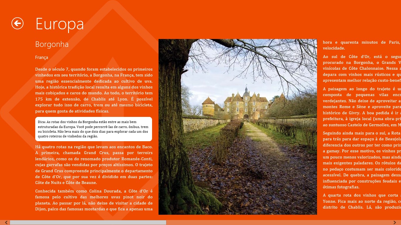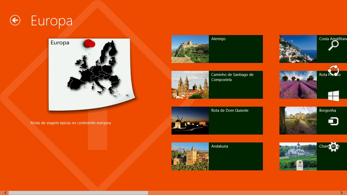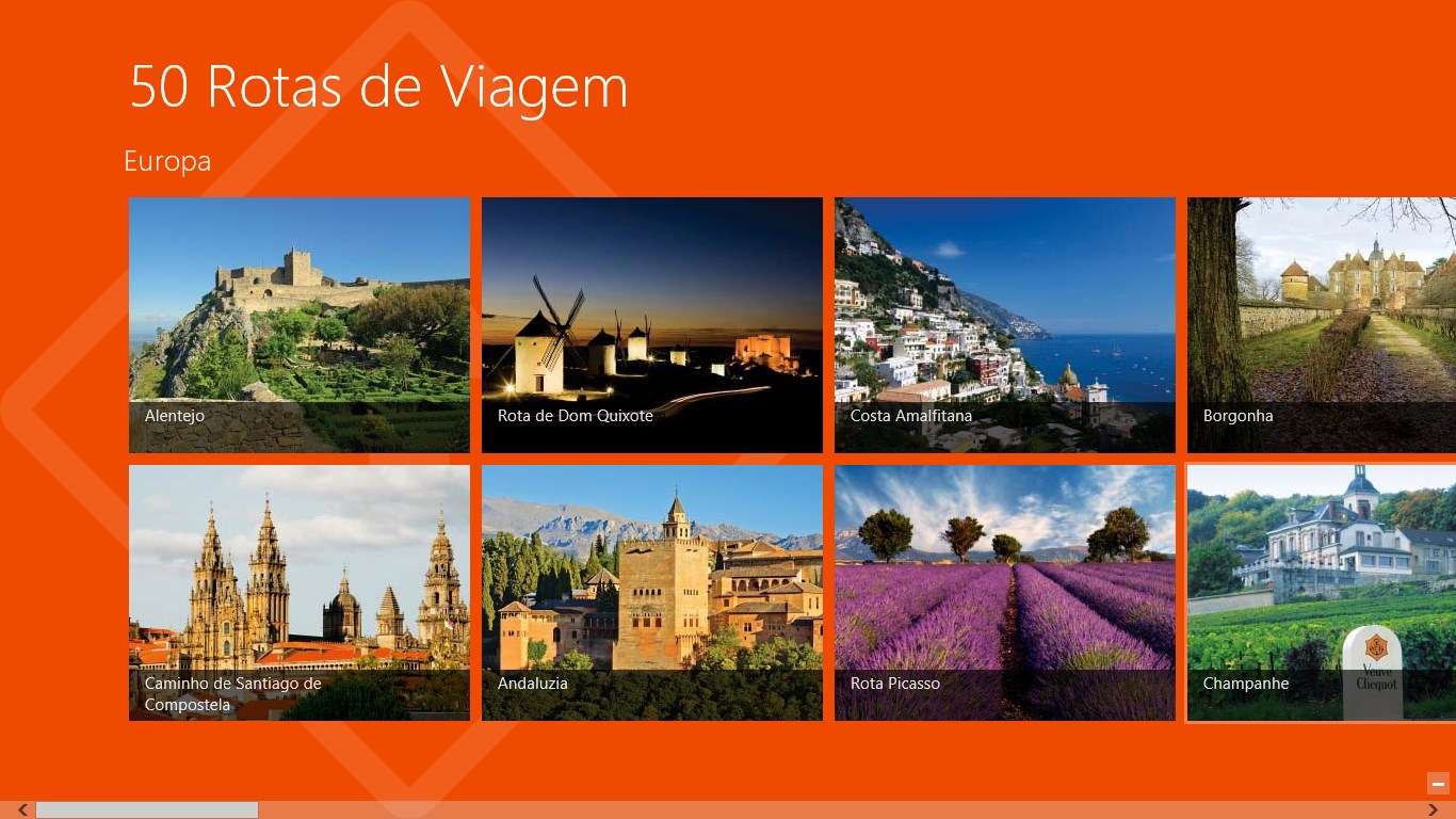 Textos descrevendo as 50 rotas de viagem com fotos mostrando detalhes de cada um deles.Busca por palavras-chaves e agrupamento por continentes do mundo.