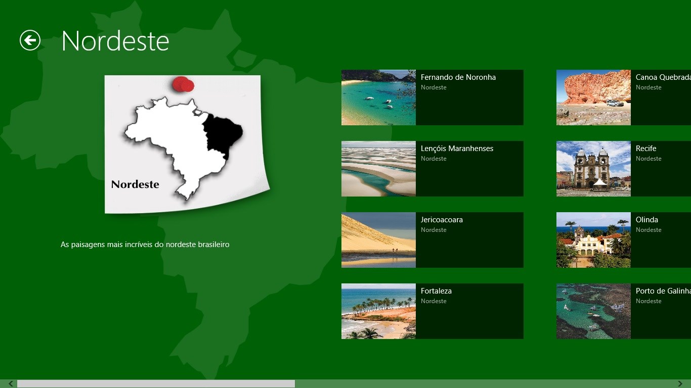O aplicativo permite que você procure por lugares do Brasil e efetue buscas por palavras-chave. Tocando nas imagens das páginas, você verá a foto ampliada em seu PC ou tablet.