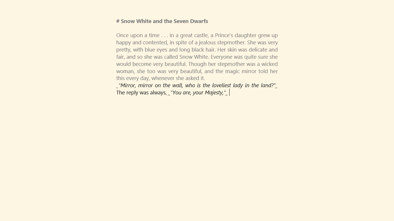 * No complex menus for formatting text - formatting is done with Markdown syntax.