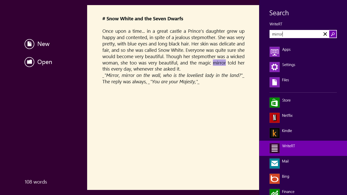 * Search in your document through the Search charm.