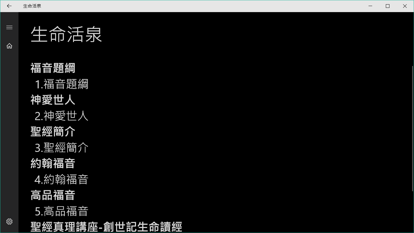 『生命活泉』有聲APP收錄福音題綱、神愛世人、聖經簡介、約翰福音、高品福音、聖經真理講座等數百篇廣播節目,適用於Windows 10平台,便於隨身收聽、贖回光陰。