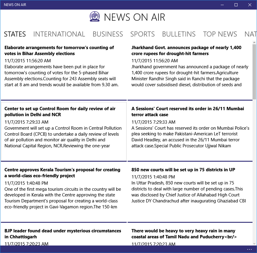 This application also reads news as Headlines and news summary. At most times, Headline and few lines of summary is well enough as AIR News is direct to point. Link is provided to read the entire story in your browser.