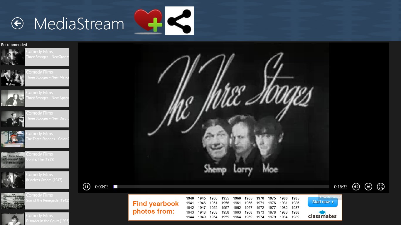 NASA Shows, Feature Films,Community Videos, Film Noir, Comedy, Computer Chronicles, Spirituality and Religions, Classic TV, Cartoons, Videogame Footage. Install MediaStream now.