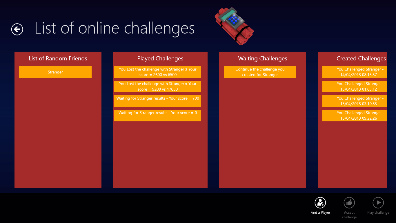 The aim of the game is simple, though not always trivial: memorize a sequence of numbers that you will need to resubmit corrected before a time limit (which will determine the explosion of the bomb). In this context, the player is called "Striker" because he will attempt to attack the bomb, disarming it on time.