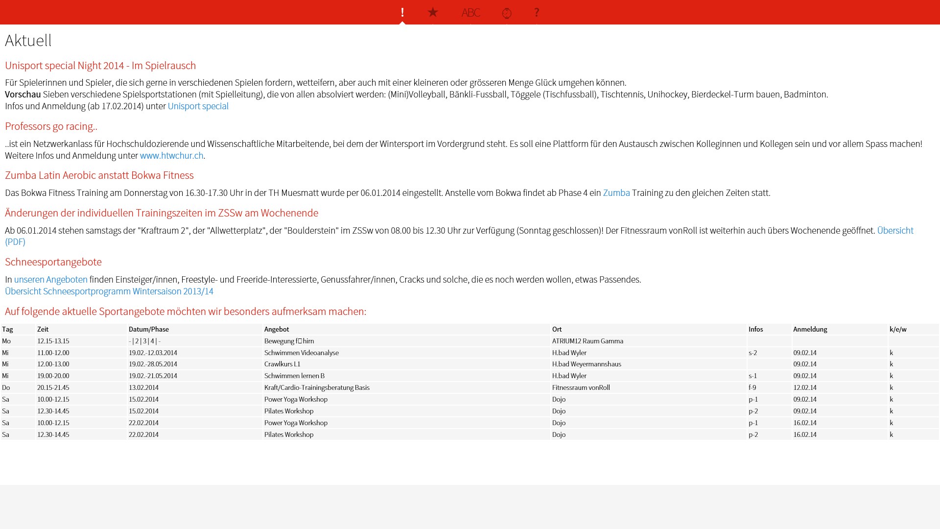 Alphabetische Auflistung der Verfügbaren AngeboteTextsuche nach AngebotenFavoritenverwaltungAktuelle Mitteilungen