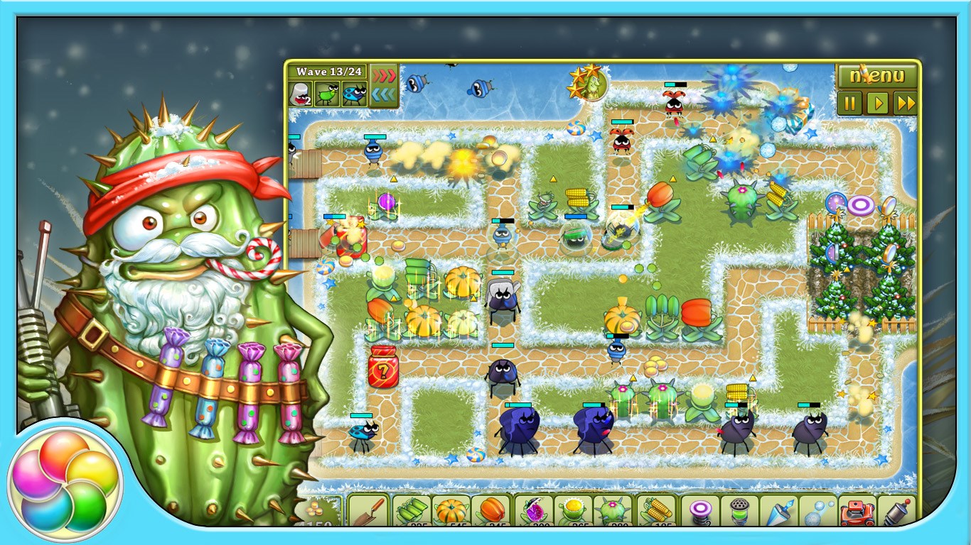 Winter is hibernation time for insects, but not in our garden! It will be hot here again this winter, and beetles are launching a full-scale offensive against the Christmas trees – on Christmas Eve! All garden dwellers are ready for the defense, and it is up to you to get into the thick of the battle and head the "Green Resistance". Earn new bonuses and win trophies as you help the plants stop the beetles from taking revenge for their recent defeat in Garden Rescue: Christmas Edition!