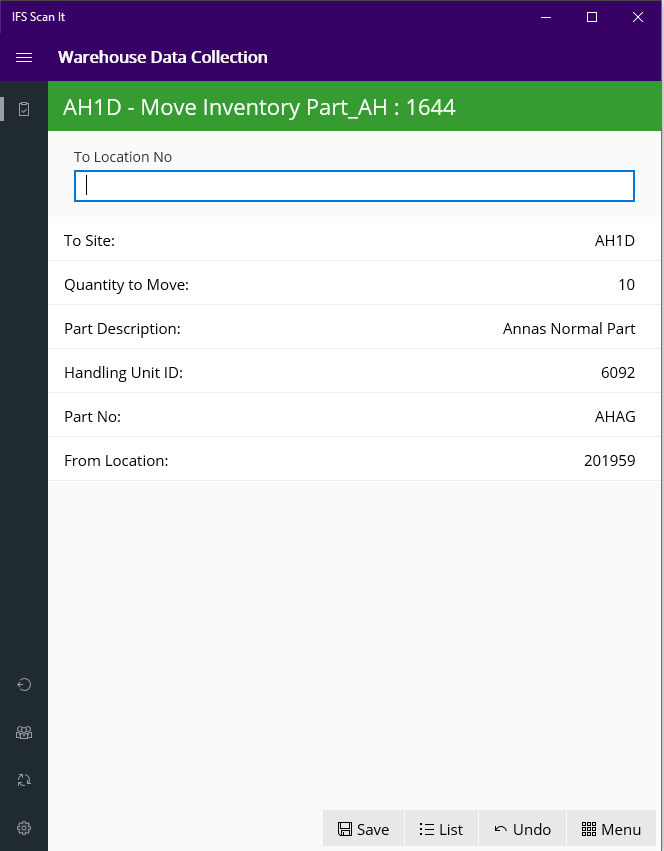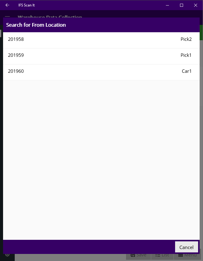 IFS Cloud Scan It comes with an easy-to-understand user interface consisting of a process menu to get you started, followed by a customer configured process flow where each step tells you what to capture by scanning a barcode or manual entry.